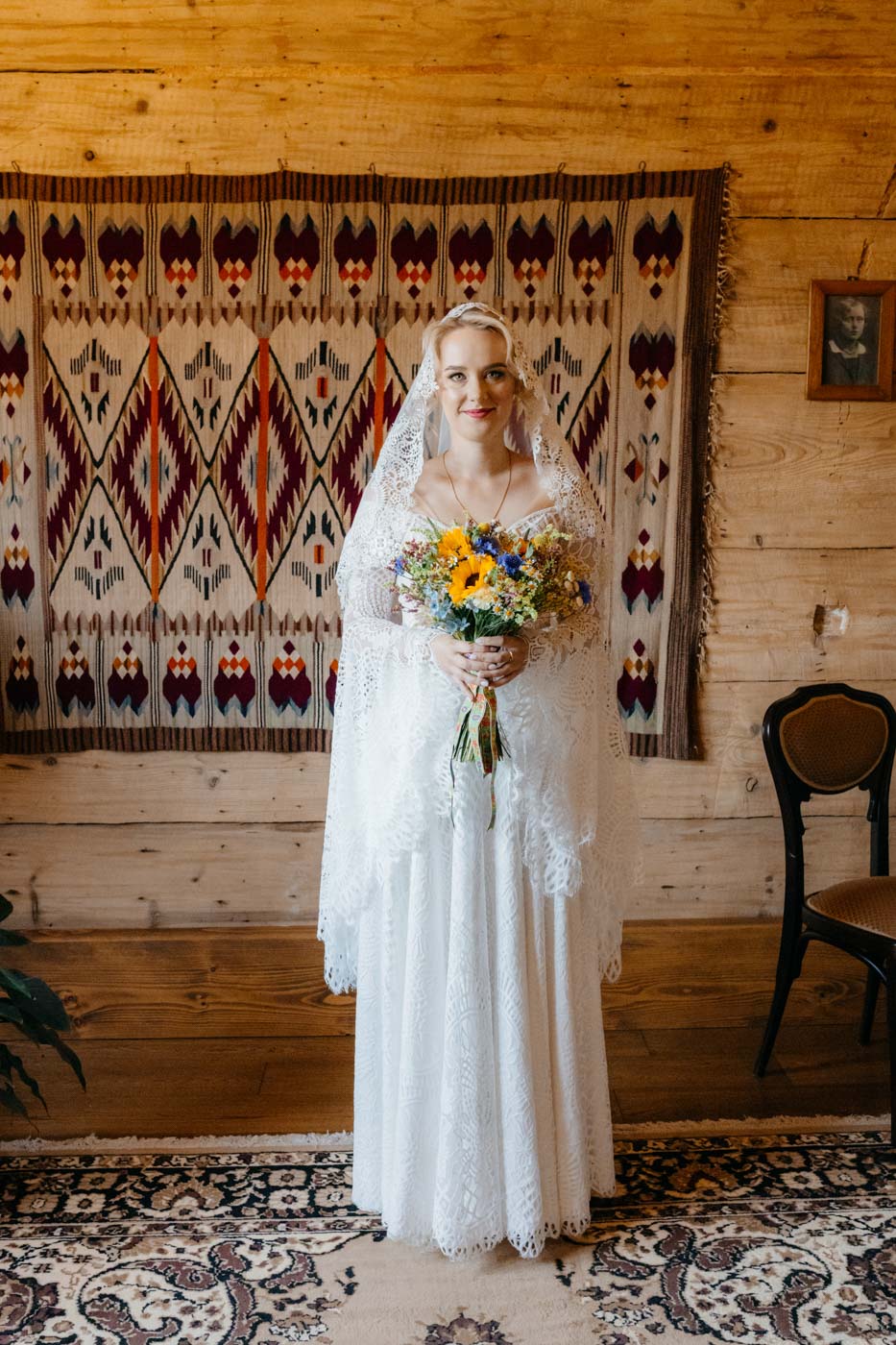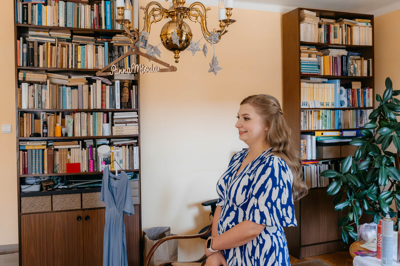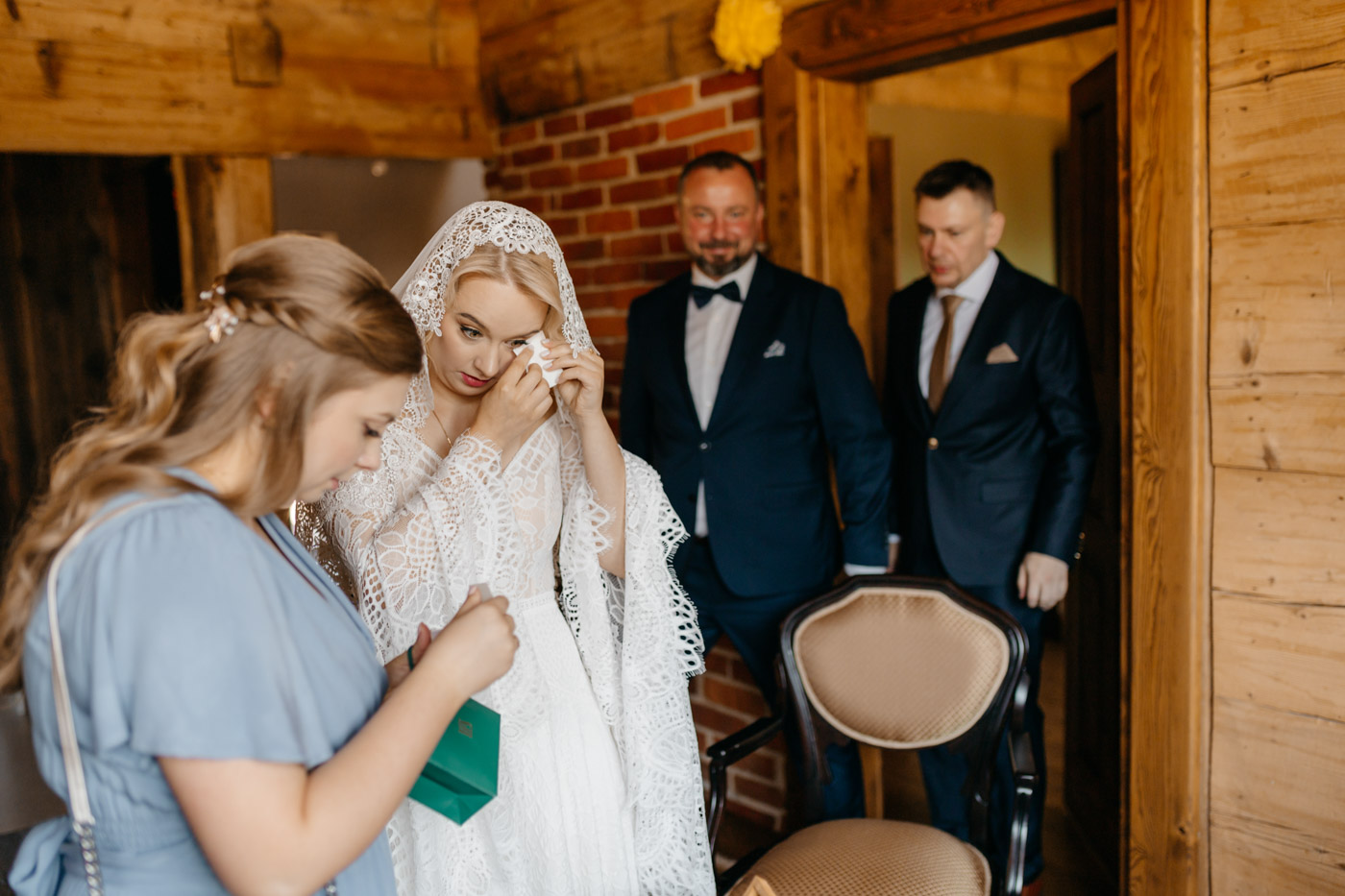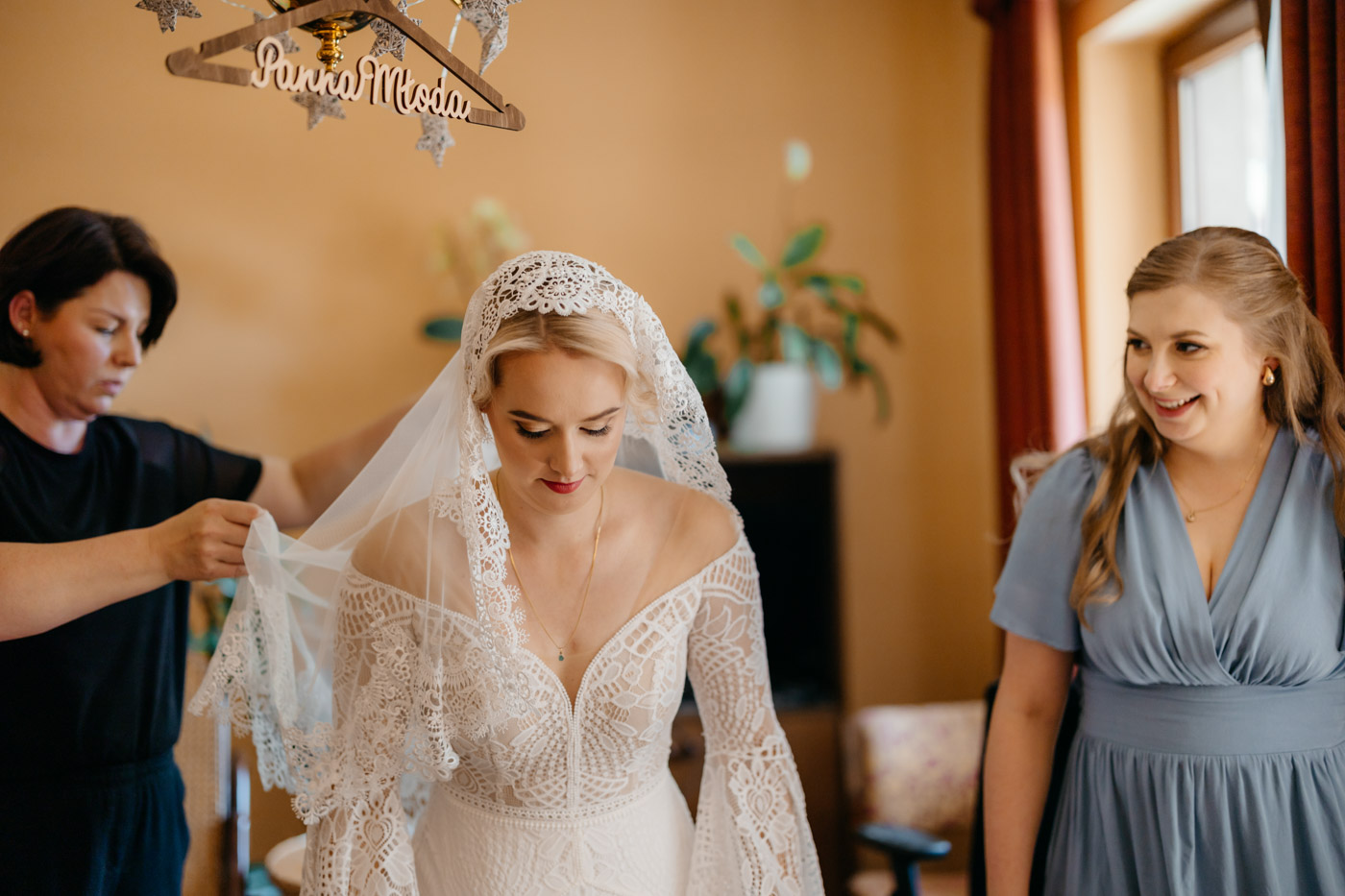 Regały uginające się pod ciężarem klasyki literatury, stare wydania Wyspiańskiego i obleczony koronką welon. W momencie w którym przekroczyłam próg domu Ewy i zobaczyłam te wszystkie detale zrozumiałam, że to będzie na prawdę inne wesele. Pełne nawiązań do tradycji i folkloru. Co rusz na każdym kroku zaskakiwały mnie i wzruszały elementy związane z historią rodziny Panny Młodej. Niezwykły stary dom, dywany na ścianach jak za dawnych lat, polne kwiaty – to wszystko stworzyło przepiękne tło do tego, co miało się wydarzyć tego dnia.