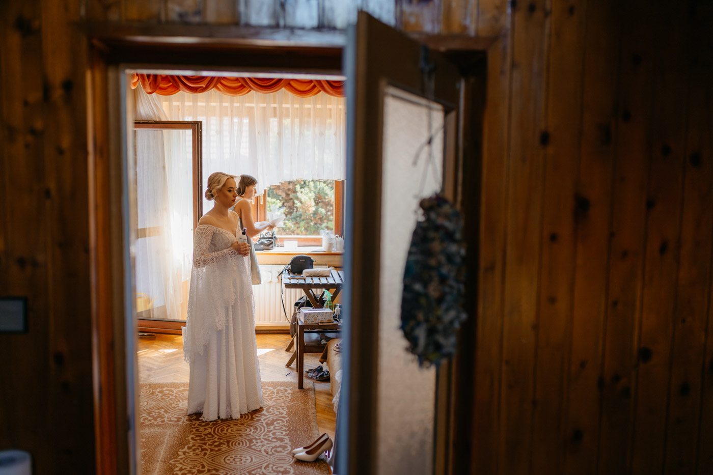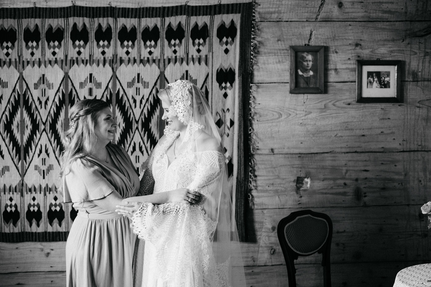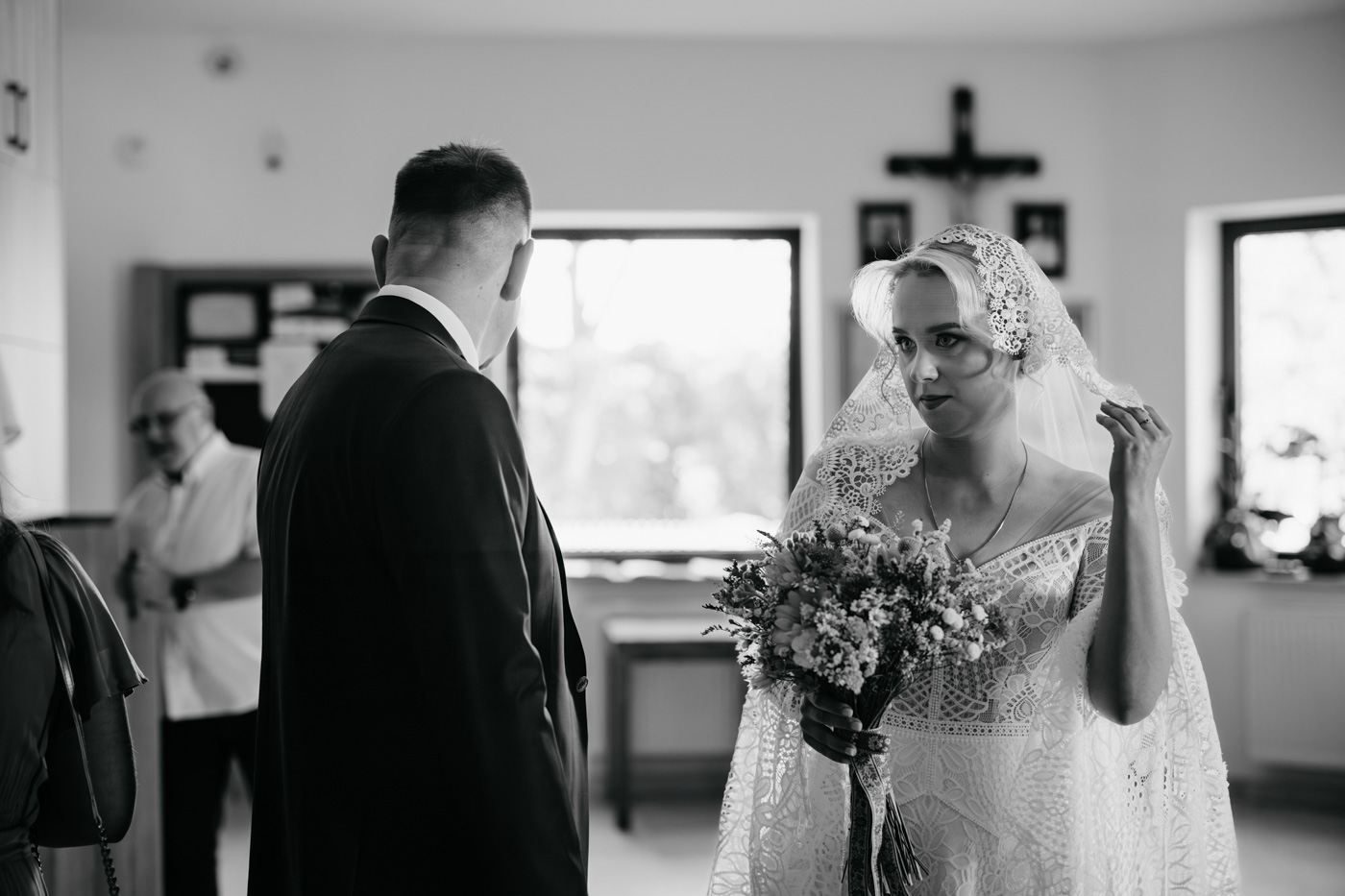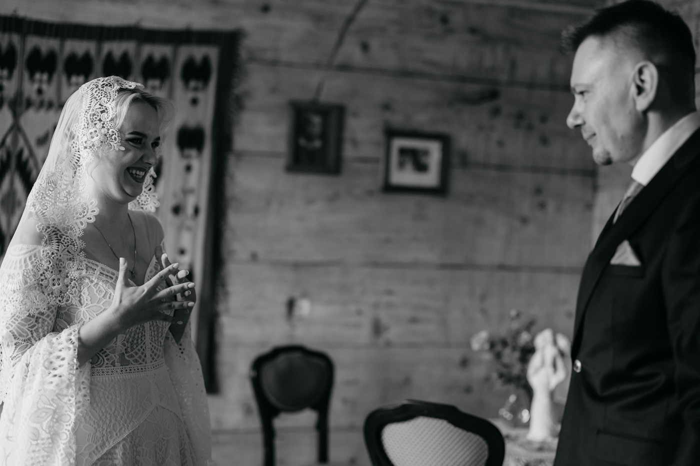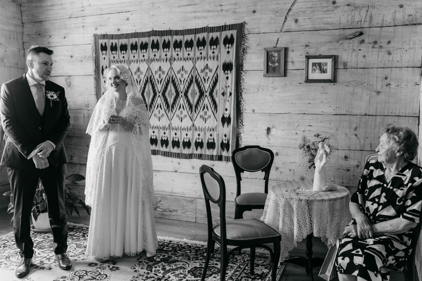 Regały uginające się pod ciężarem klasyki literatury, stare wydania Wyspiańskiego i obleczony koronką welon. W momencie w którym przekroczyłam próg domu Ewy i zobaczyłam te wszystkie detale zrozumiałam, że to będzie na prawdę inne wesele. Pełne nawiązań do tradycji i folkloru. Co rusz na każdym kroku zaskakiwały mnie i wzruszały elementy związane z historią rodziny Panny Młodej. Niezwykły stary dom, dywany na ścianach jak za dawnych lat, polne kwiaty – to wszystko stworzyło przepiękne tło do tego, co miało się wydarzyć tego dnia.