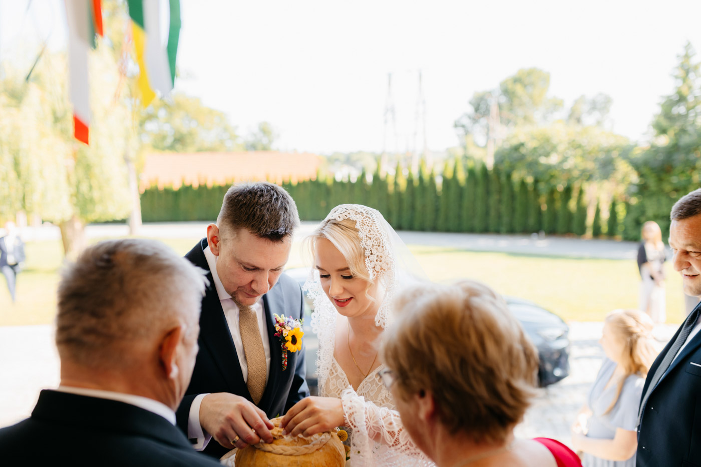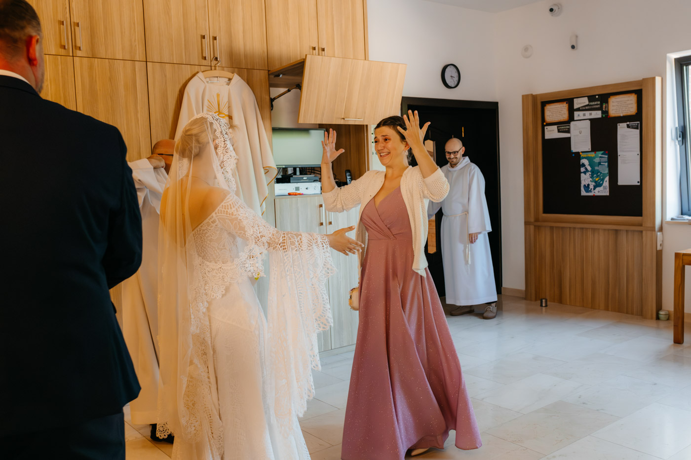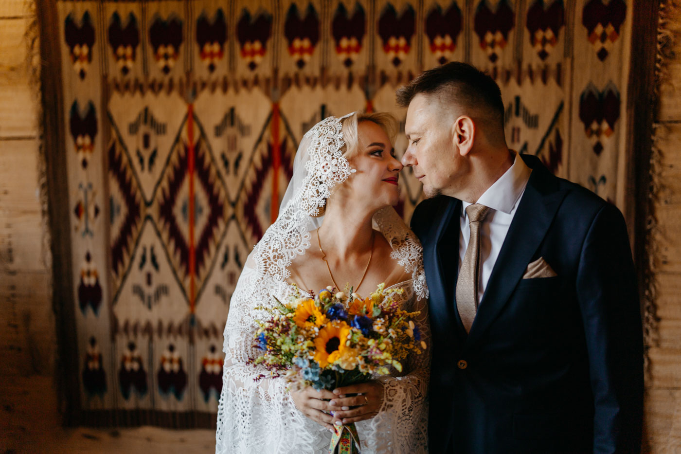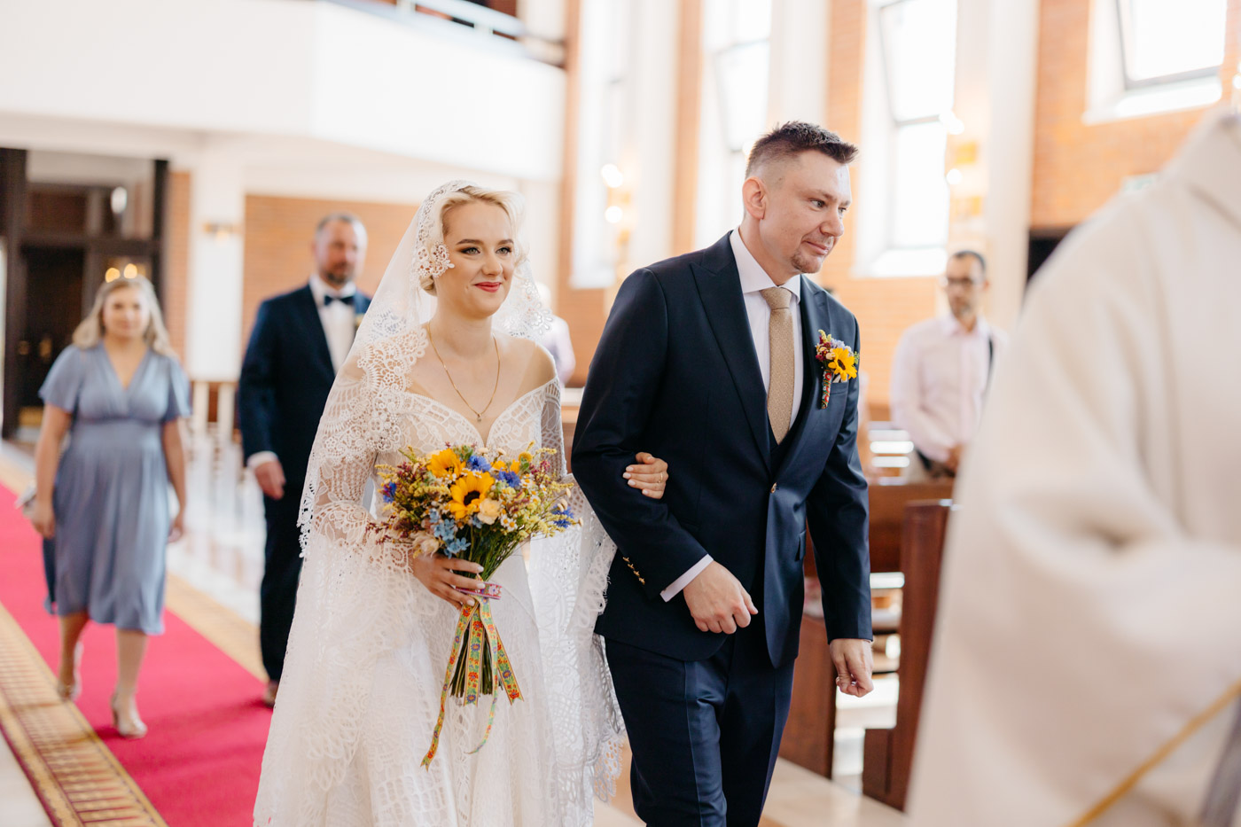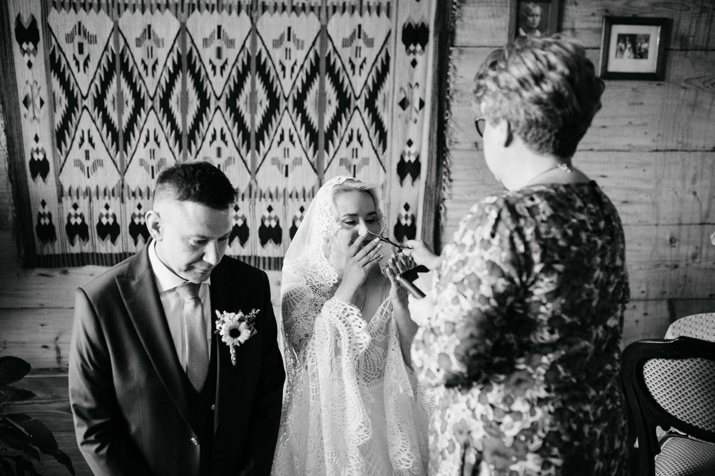 Regały uginające się pod ciężarem klasyki literatury, stare wydania Wyspiańskiego i obleczony koronką welon. W momencie w którym przekroczyłam próg domu Ewy i zobaczyłam te wszystkie detale zrozumiałam, że to będzie na prawdę inne wesele. Pełne nawiązań do tradycji i folkloru. Co rusz na każdym kroku zaskakiwały mnie i wzruszały elementy związane z historią rodziny Panny Młodej. Niezwykły stary dom, dywany na ścianach jak za dawnych lat, polne kwiaty – to wszystko stworzyło przepiękne tło do tego, co miało się wydarzyć tego dnia.