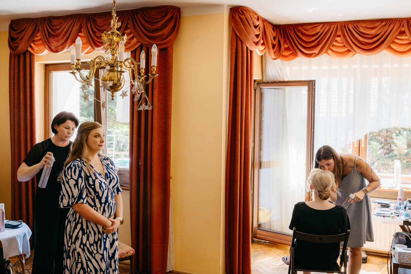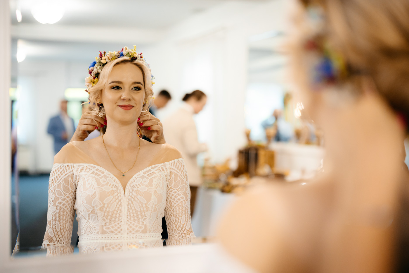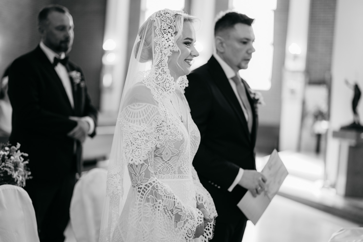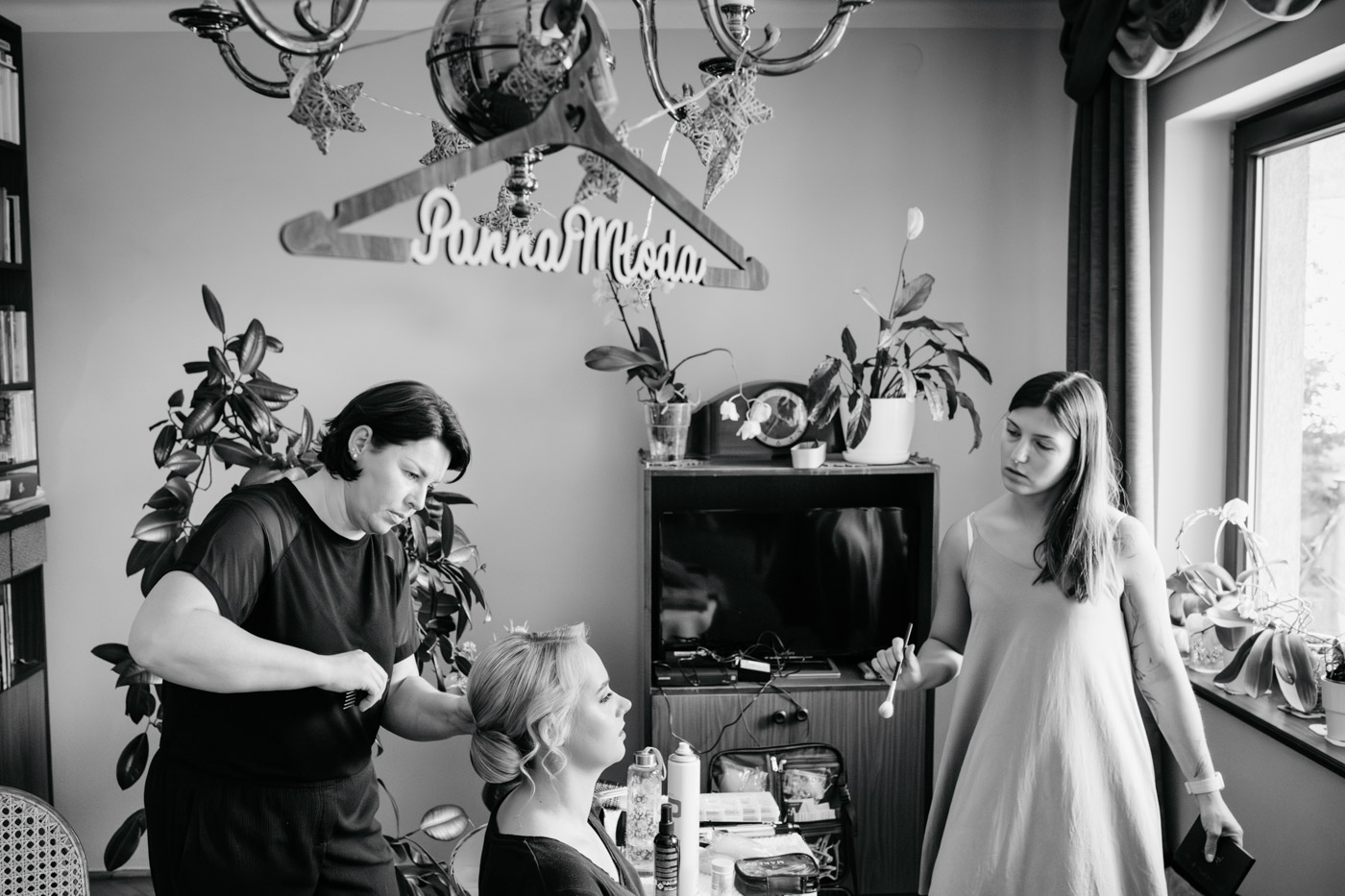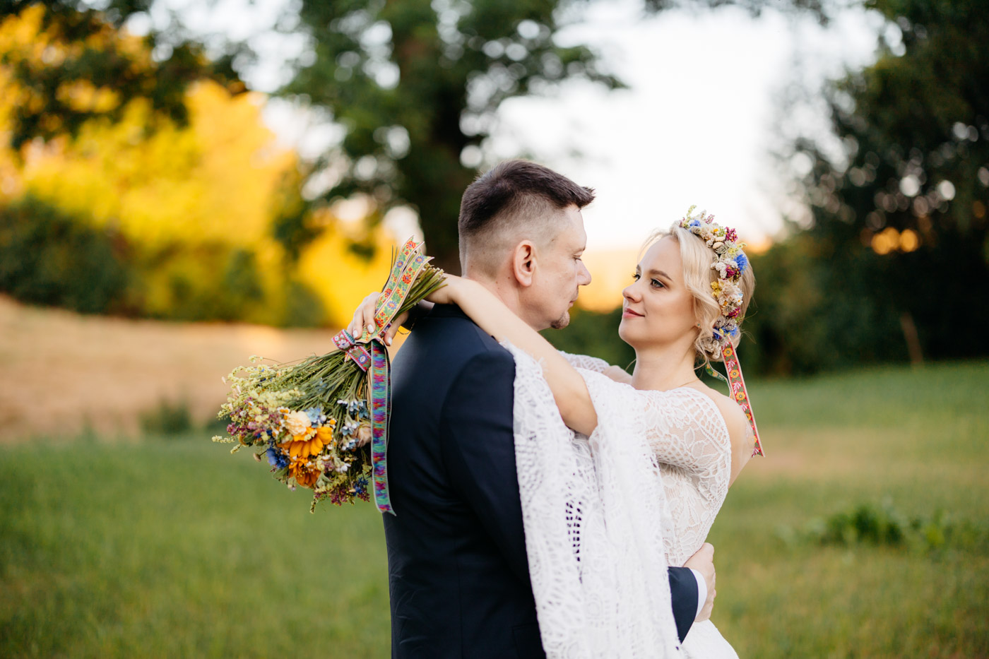 Regały uginające się pod ciężarem klasyki literatury, stare wydania Wyspiańskiego i obleczony koronką welon. W momencie w którym przekroczyłam próg domu Ewy i zobaczyłam te wszystkie detale zrozumiałam, że to będzie na prawdę inne wesele. Pełne nawiązań do tradycji i folkloru. Co rusz na każdym kroku zaskakiwały mnie i wzruszały elementy związane z historią rodziny Panny Młodej. Niezwykły stary dom, dywany na ścianach jak za dawnych lat, polne kwiaty – to wszystko stworzyło przepiękne tło do tego, co miało się wydarzyć tego dnia.