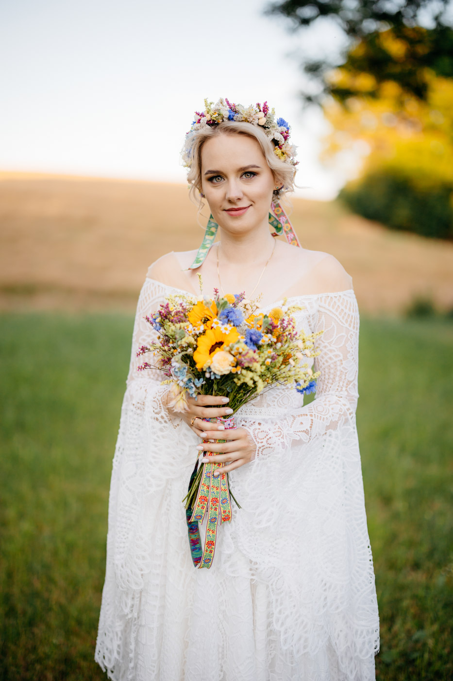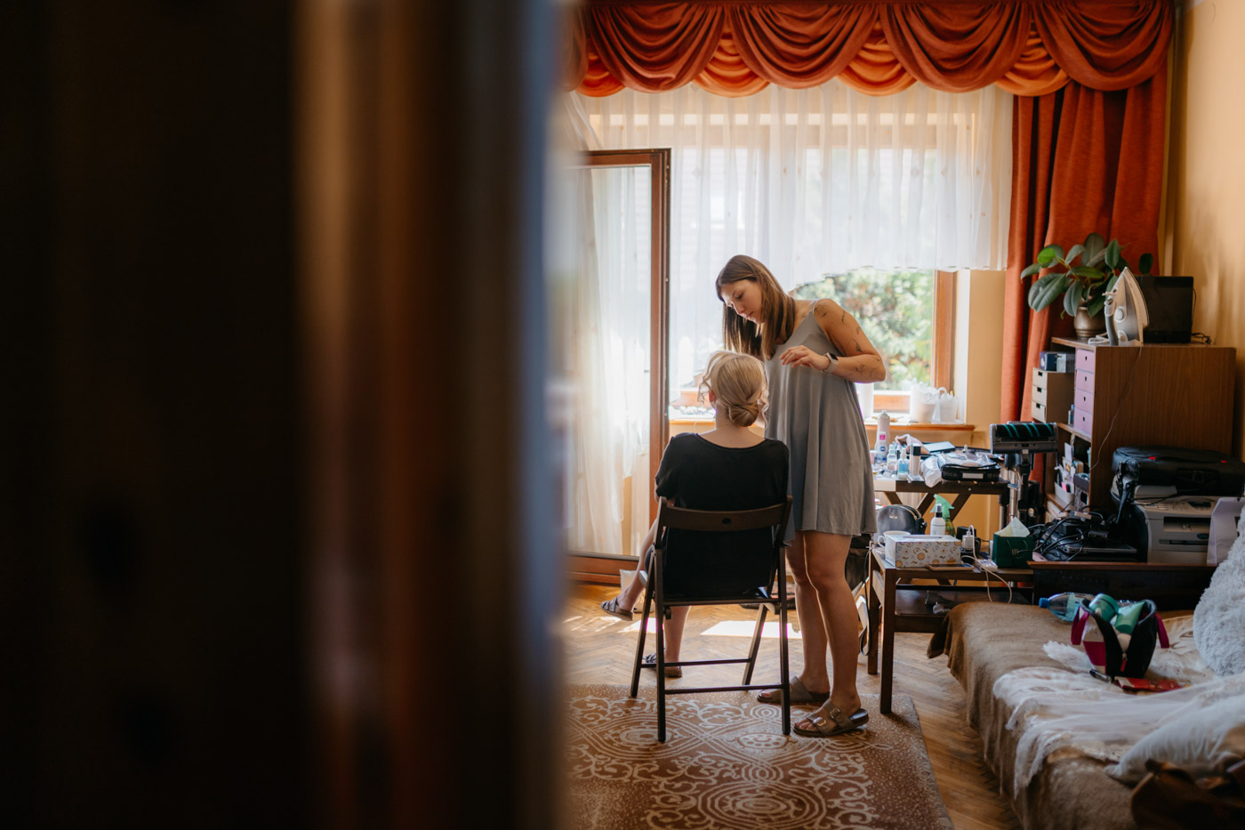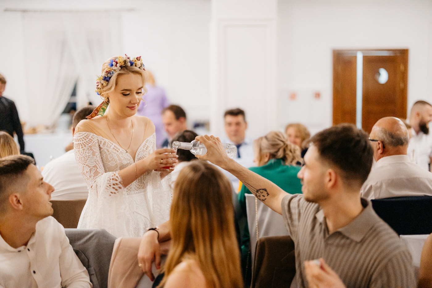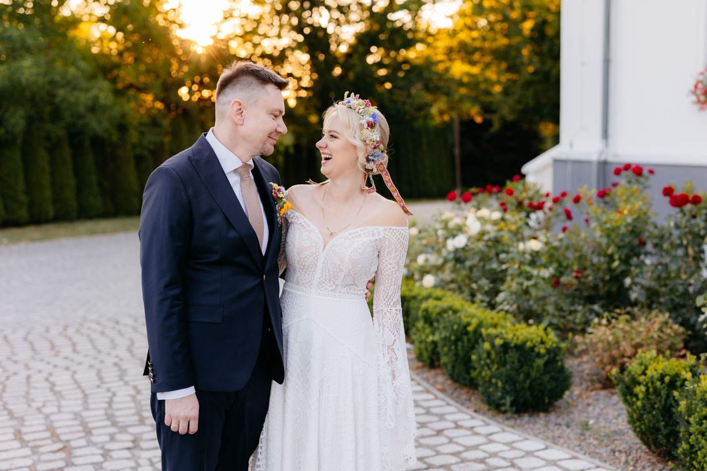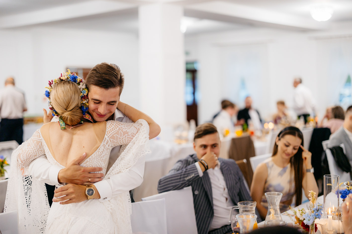 Regały uginające się pod ciężarem klasyki literatury, stare wydania Wyspiańskiego i obleczony koronką welon. W momencie w którym przekroczyłam próg domu Ewy i zobaczyłam te wszystkie detale zrozumiałam, że to będzie na prawdę inne wesele. Pełne nawiązań do tradycji i folkloru. Co rusz na każdym kroku zaskakiwały mnie i wzruszały elementy związane z historią rodziny Panny Młodej. Niezwykły stary dom, dywany na ścianach jak za dawnych lat, polne kwiaty – to wszystko stworzyło przepiękne tło do tego, co miało się wydarzyć tego dnia.