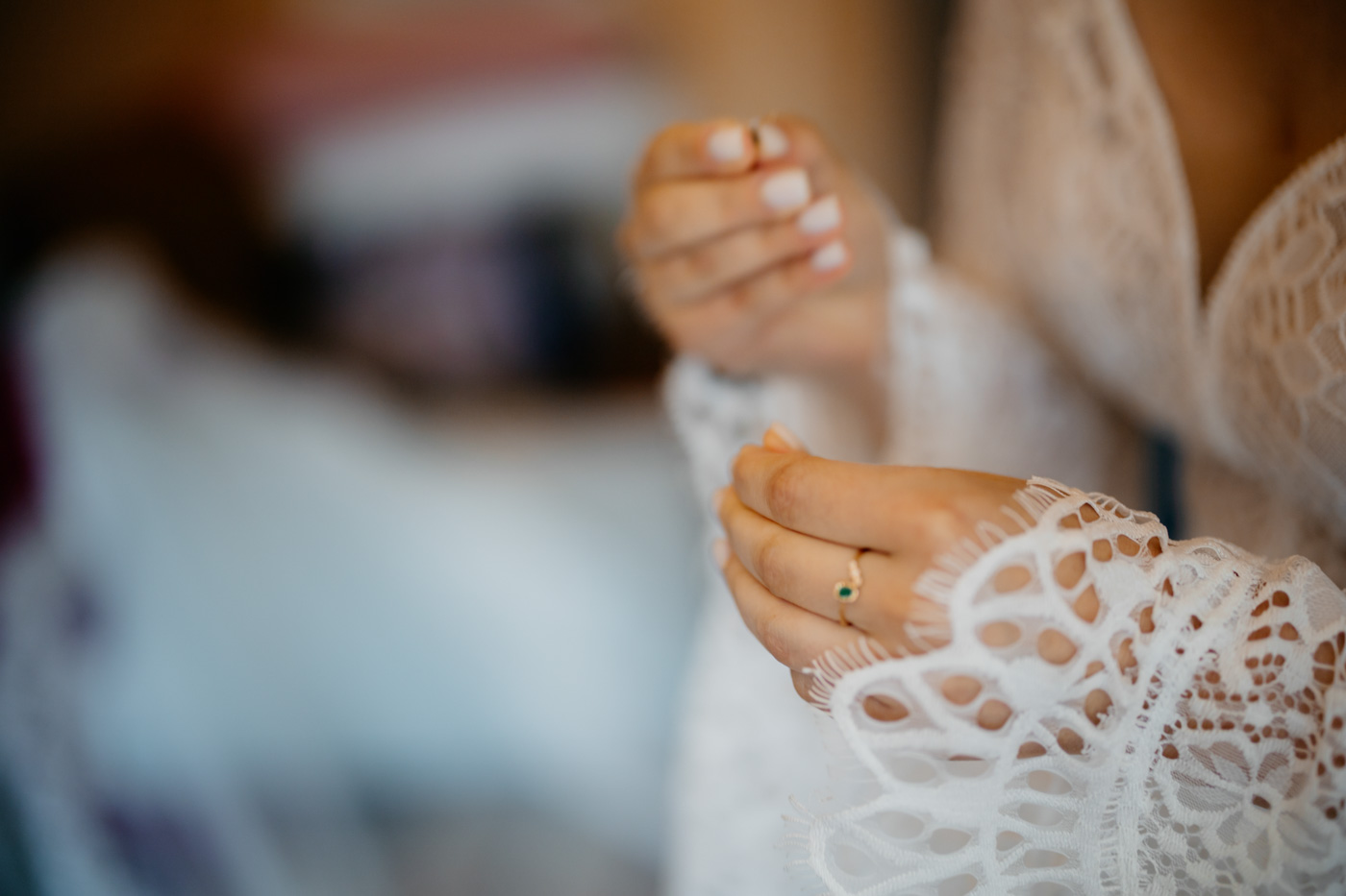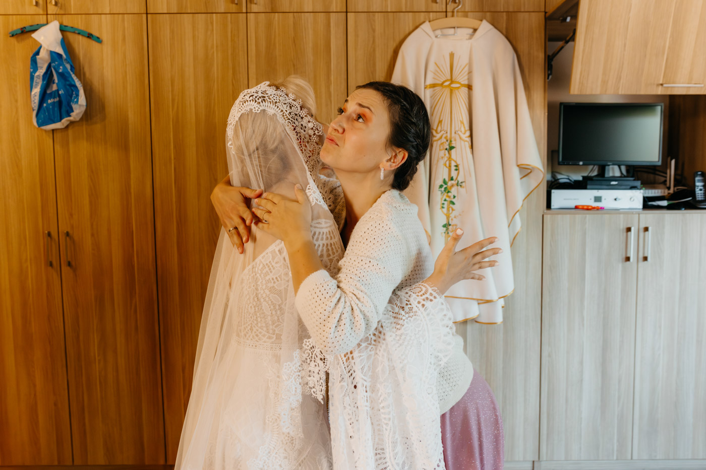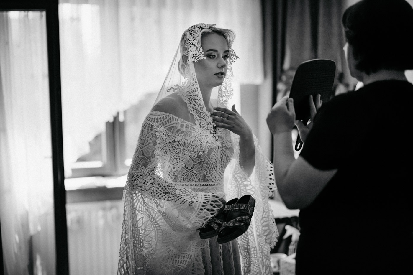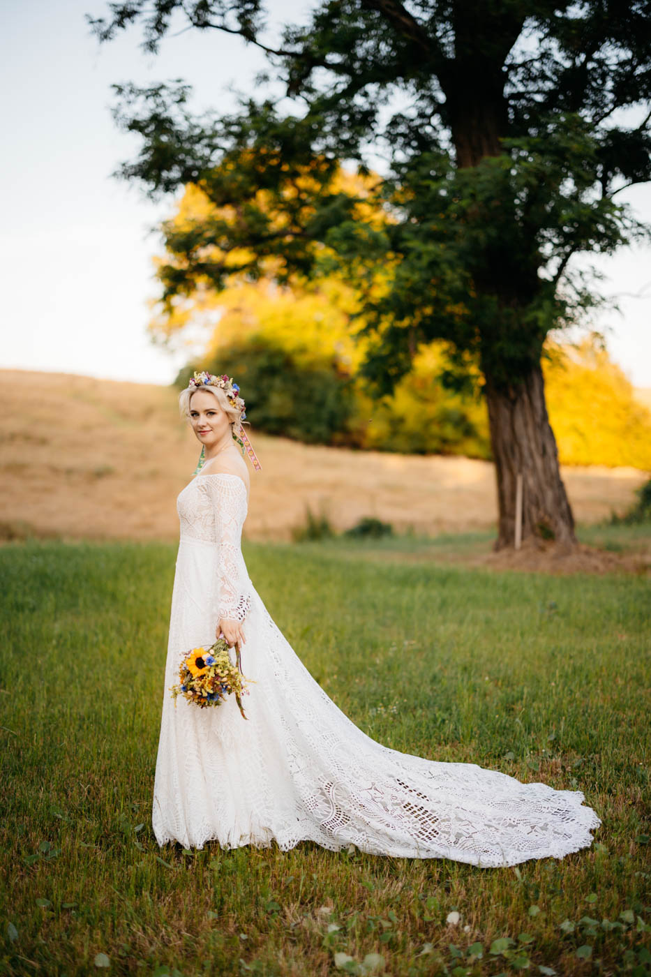 Regały uginające się pod ciężarem klasyki literatury, stare wydania Wyspiańskiego i obleczony koronką welon. W momencie w którym przekroczyłam próg domu Ewy i zobaczyłam te wszystkie detale zrozumiałam, że to będzie na prawdę inne wesele. Pełne nawiązań do tradycji i folkloru. Co rusz na każdym kroku zaskakiwały mnie i wzruszały elementy związane z historią rodziny Panny Młodej. Niezwykły stary dom, dywany na ścianach jak za dawnych lat, polne kwiaty – to wszystko stworzyło przepiękne tło do tego, co miało się wydarzyć tego dnia.