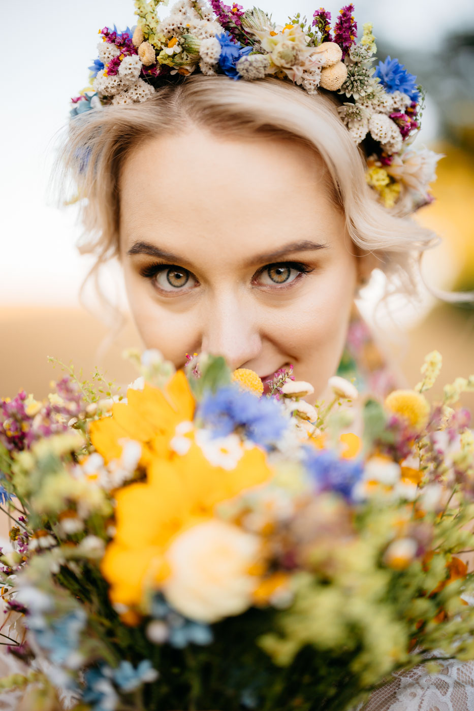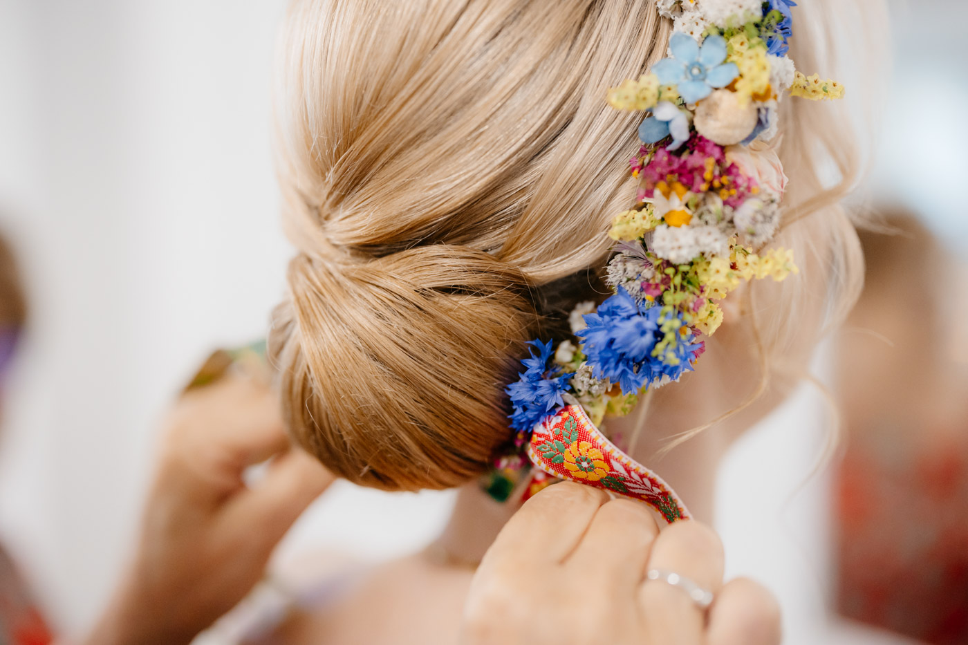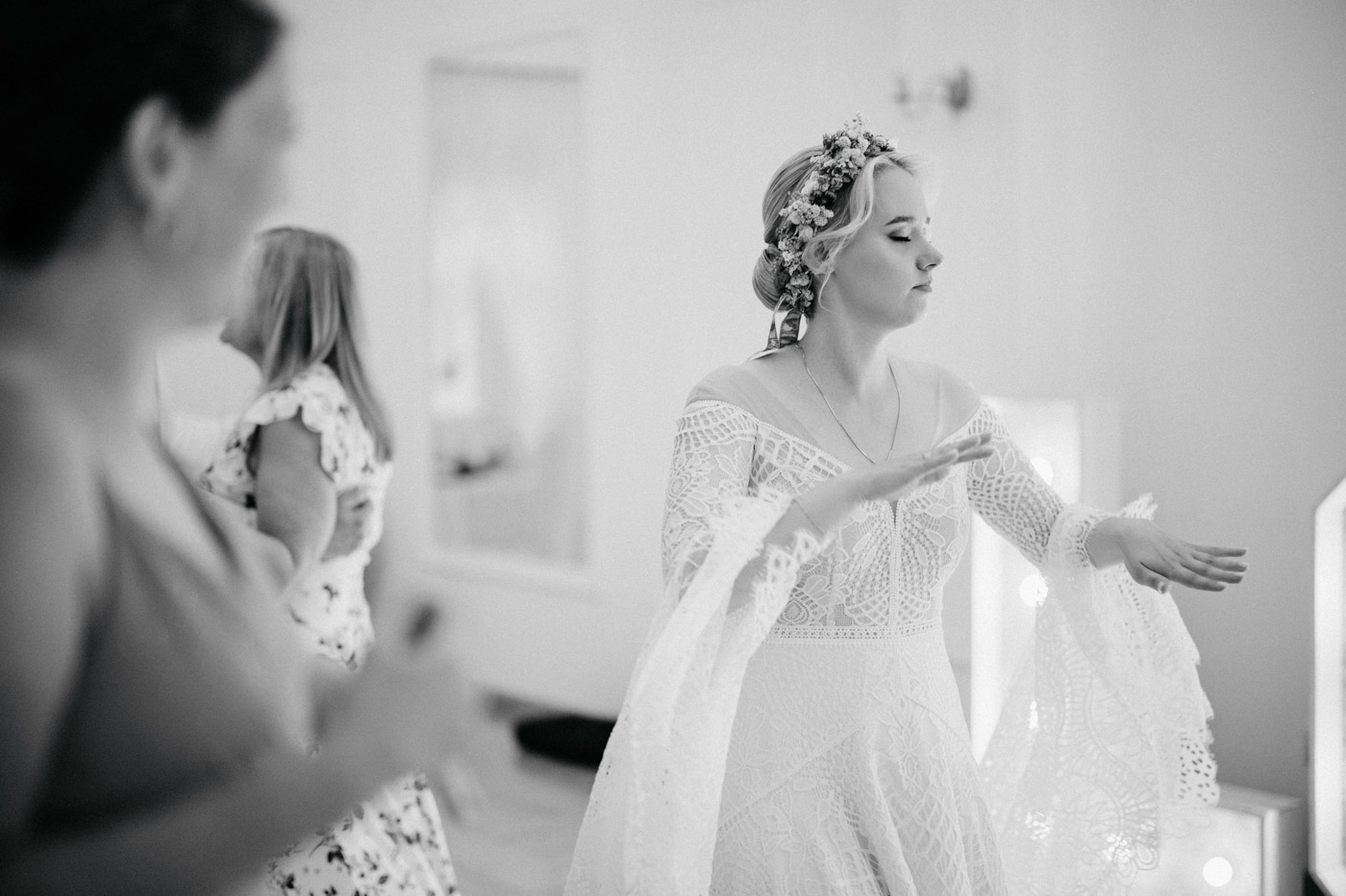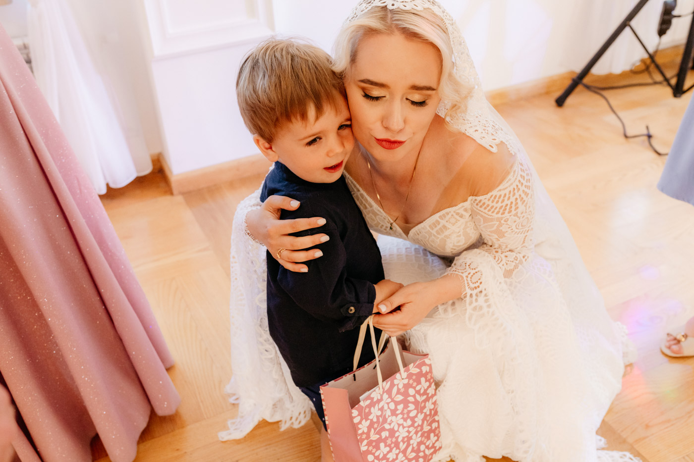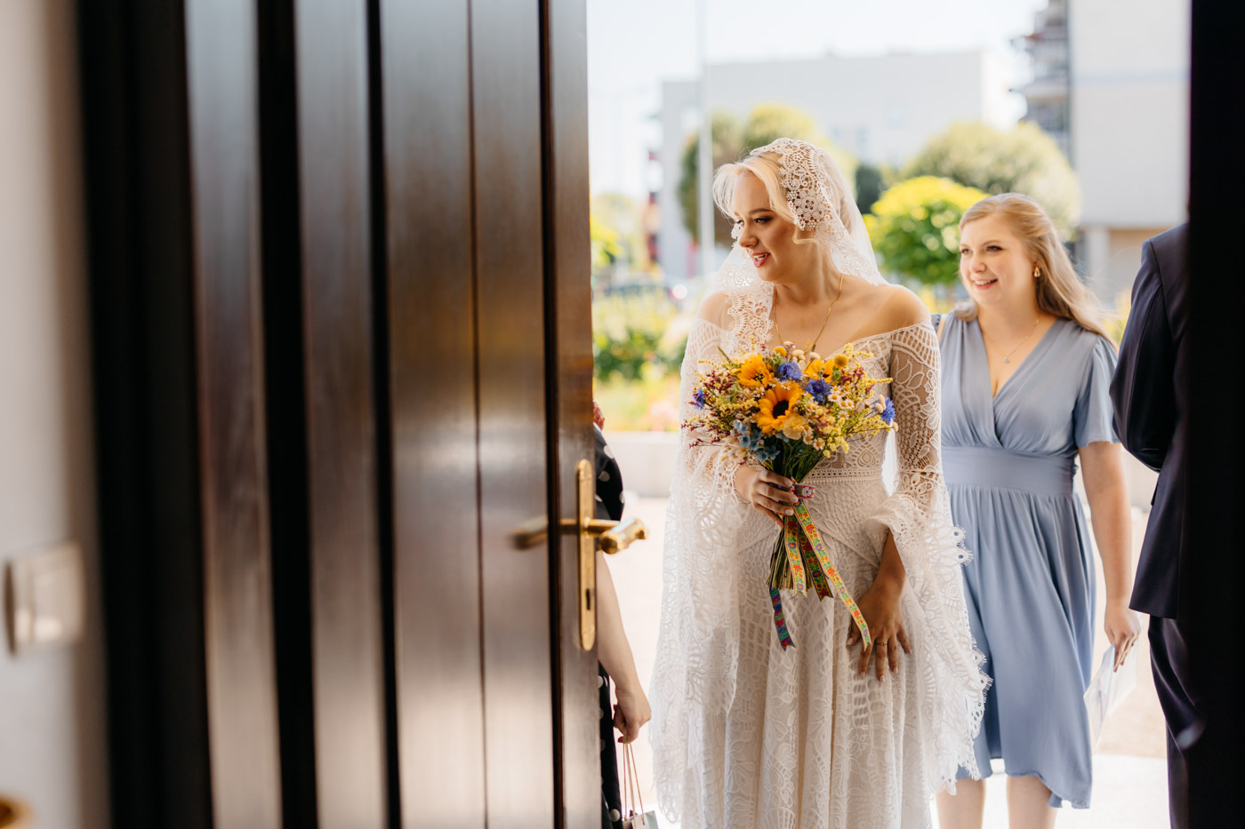 Regały uginające się pod ciężarem klasyki literatury, stare wydania Wyspiańskiego i obleczony koronką welon. W momencie w którym przekroczyłam próg domu Ewy i zobaczyłam te wszystkie detale zrozumiałam, że to będzie na prawdę inne wesele. Pełne nawiązań do tradycji i folkloru. Co rusz na każdym kroku zaskakiwały mnie i wzruszały elementy związane z historią rodziny Panny Młodej. Niezwykły stary dom, dywany na ścianach jak za dawnych lat, polne kwiaty – to wszystko stworzyło przepiękne tło do tego, co miało się wydarzyć tego dnia.