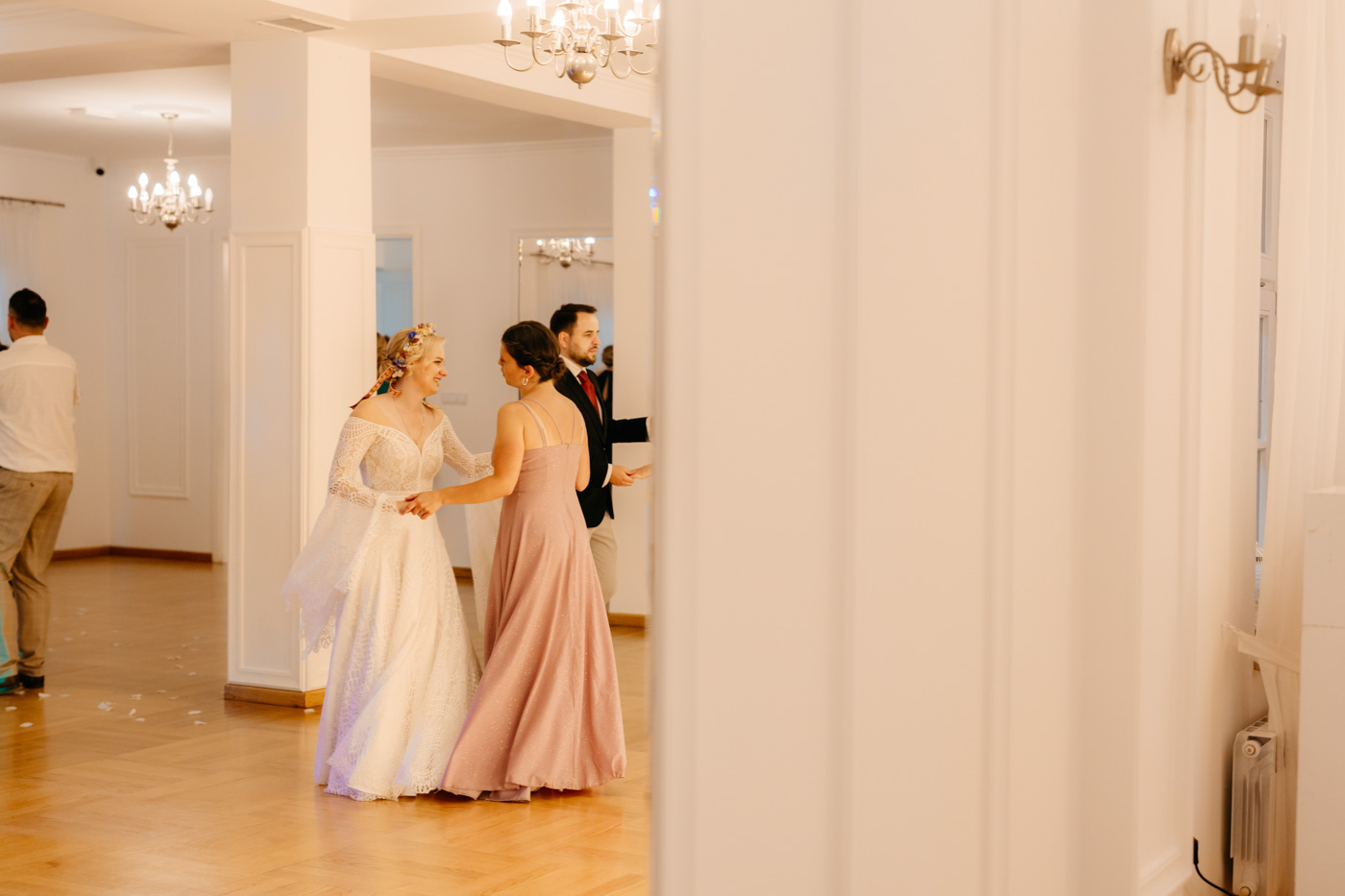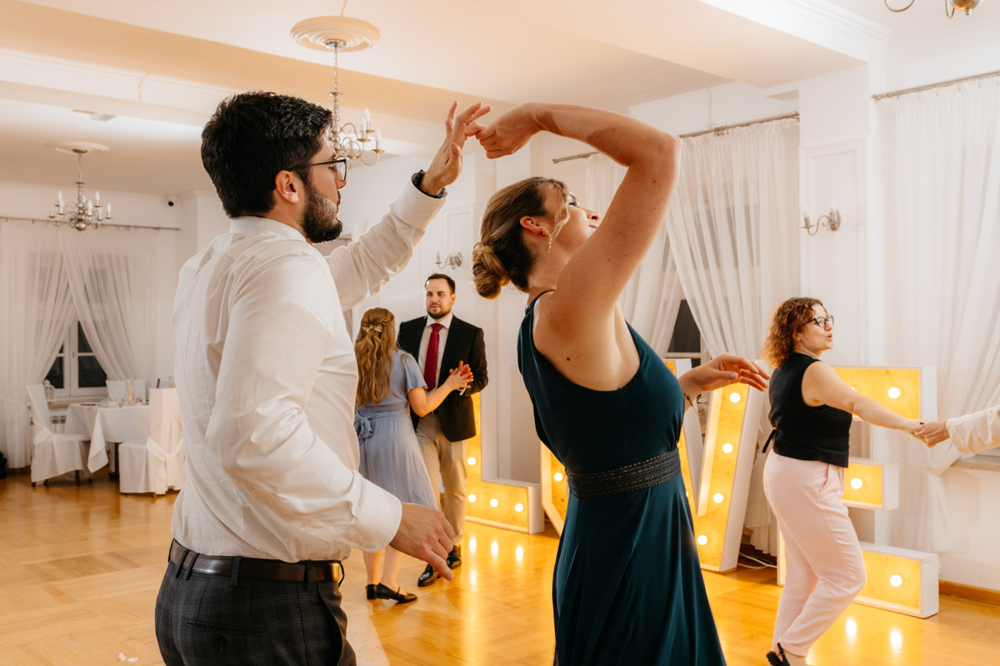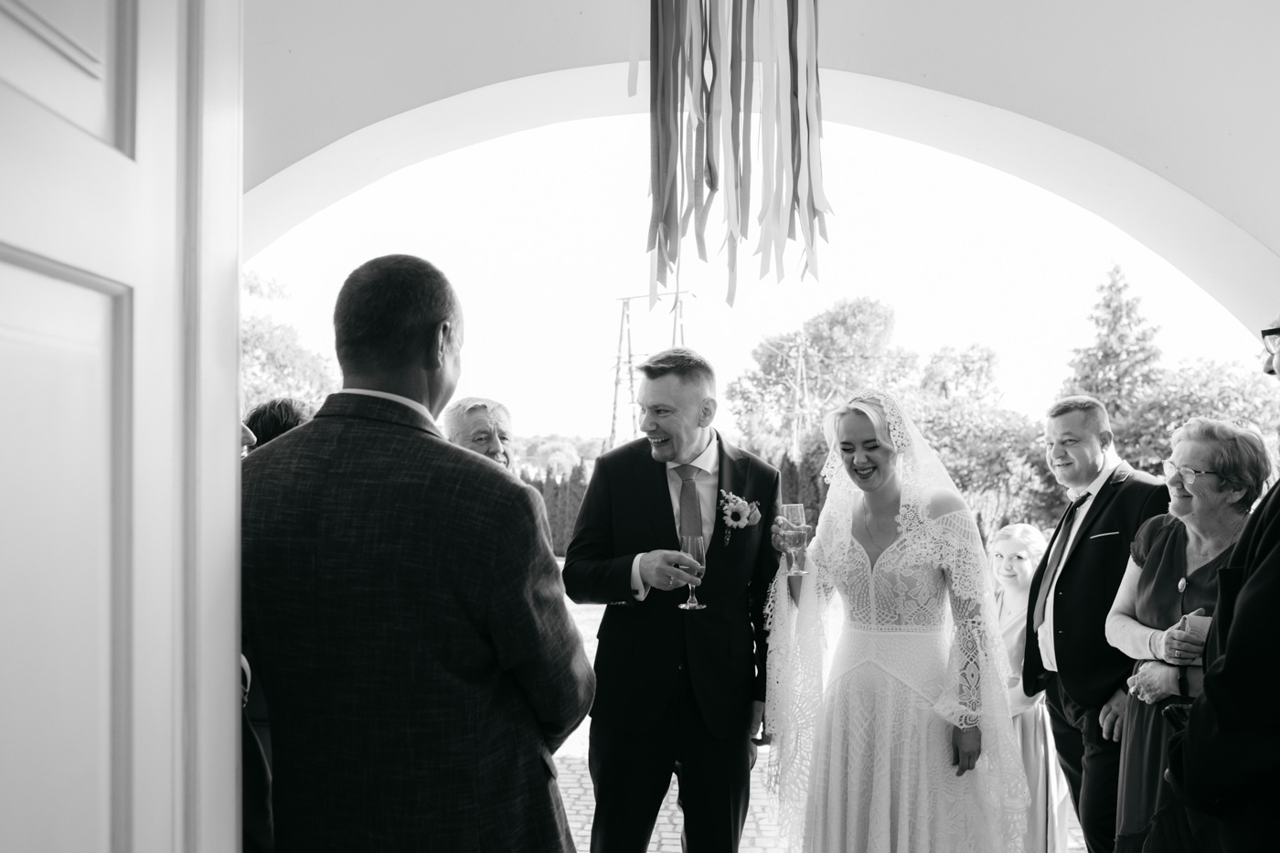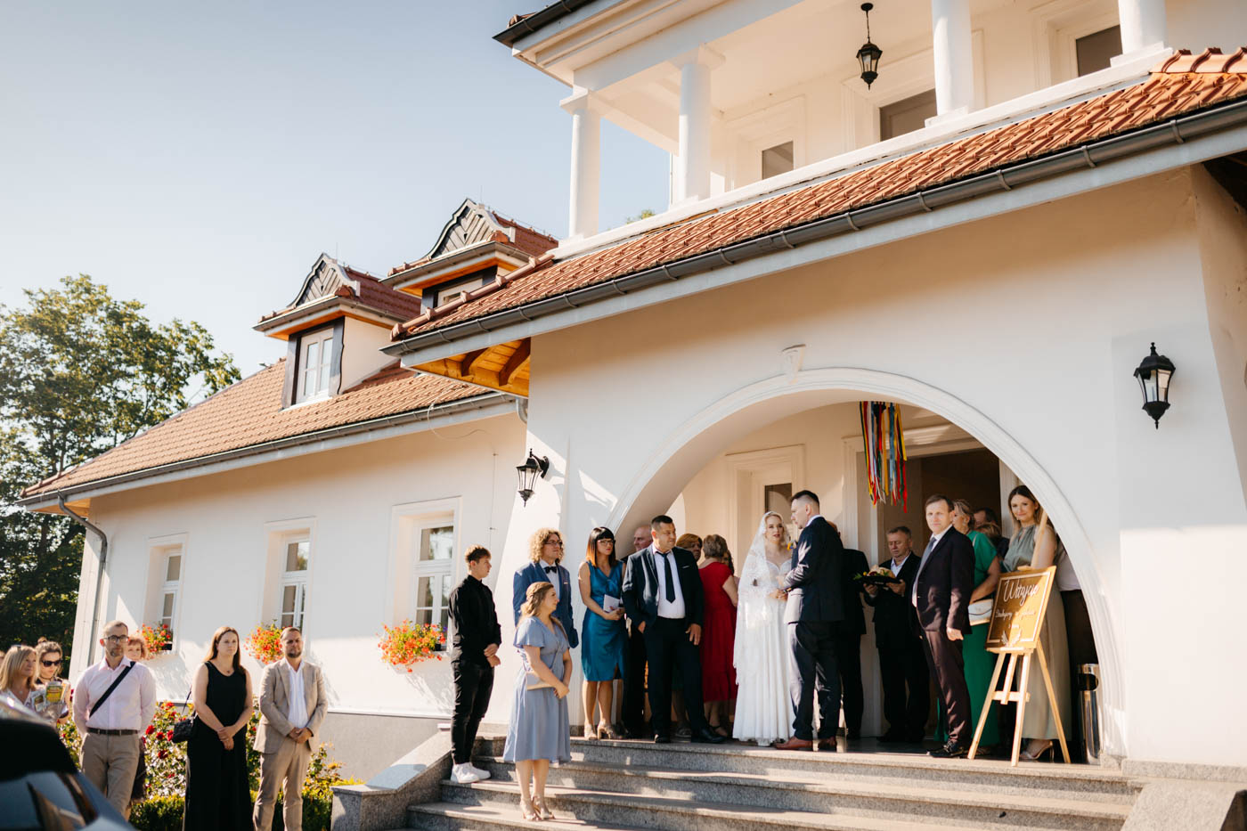 Nie wyobrażam sobie tego dnia gdzie indziej. Klimat starego dworu, oddzielonego od drogi alejką wiekowych drzew wpisał się perfekcyjnie. Nie obyło się bez wzruszeń, uścisków, szaleństwa na parkiecie i toastów z kieliszkiem w dłoni. Miałam wrażenie, że działo się tyle w środku, jak i na zewnątrz, że niesamowicie trudno przyszło mi wyselekcjonować odpowiednią ilość kadrów.