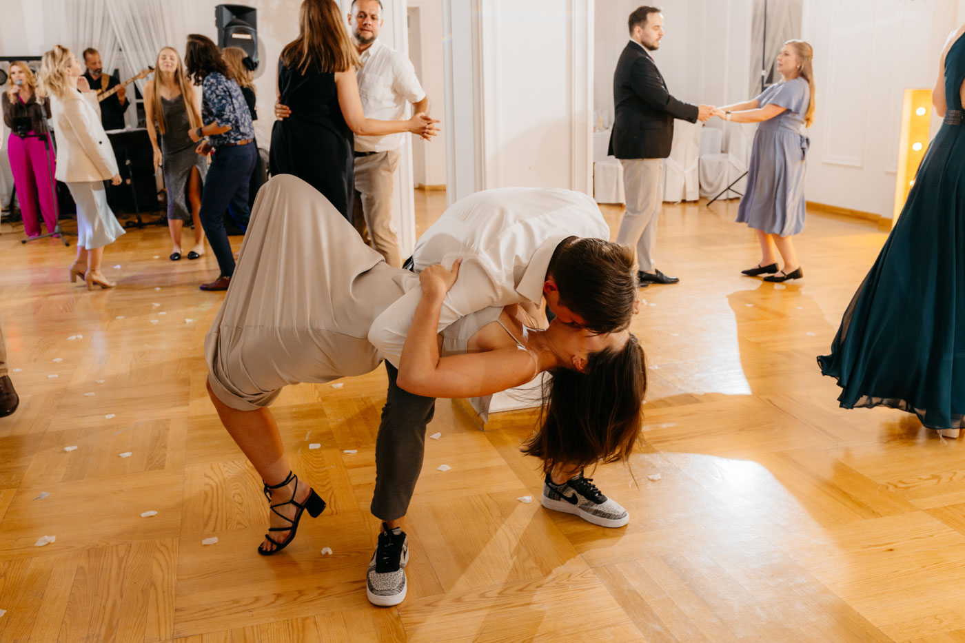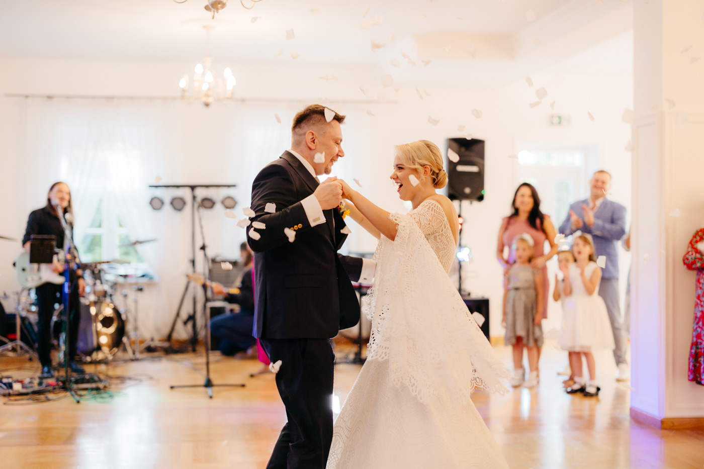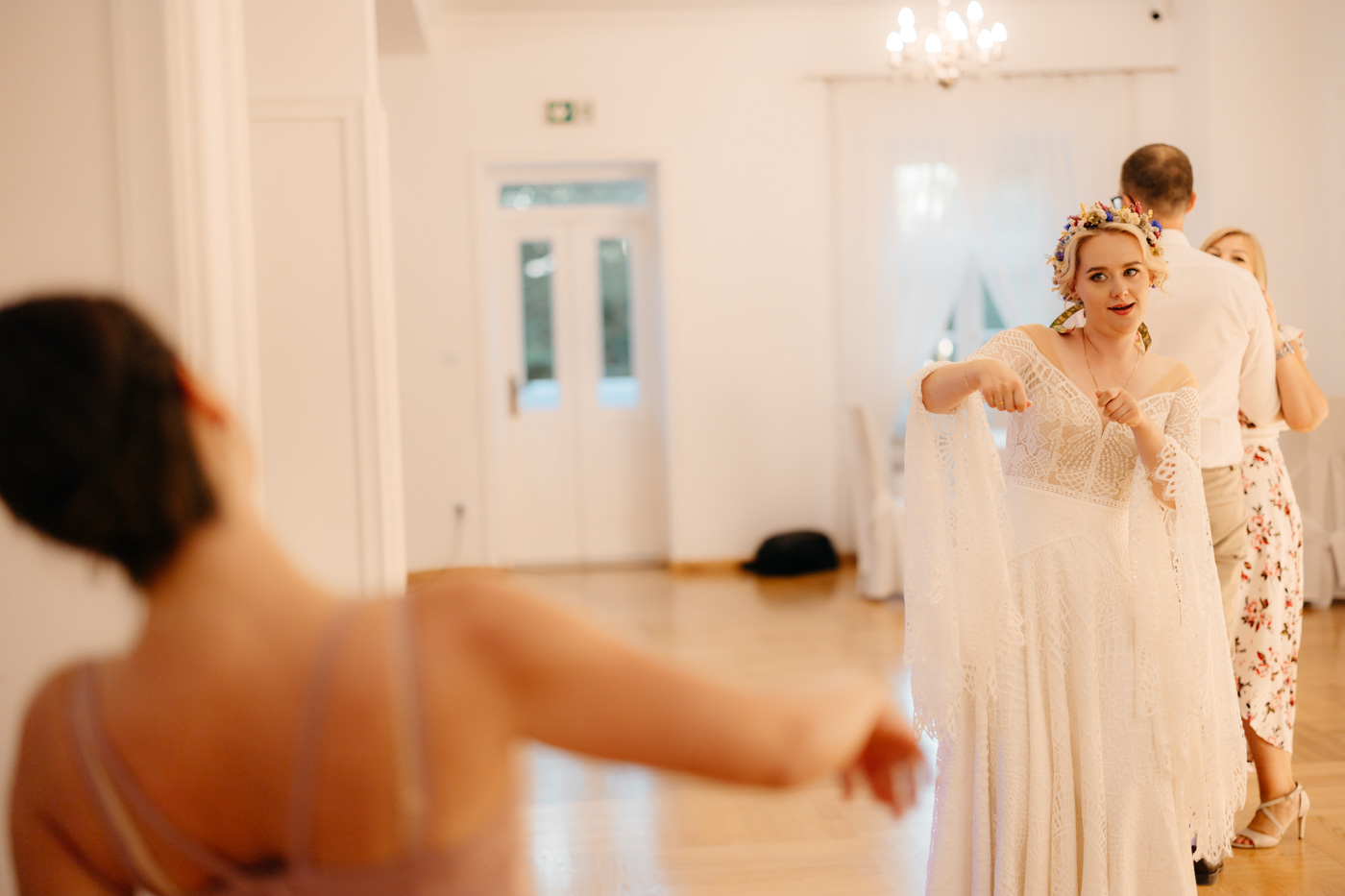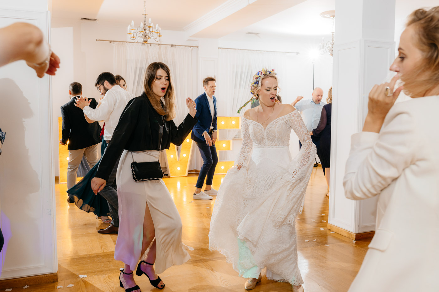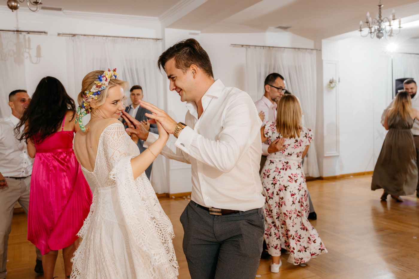 Nie wyobrażam sobie tego dnia gdzie indziej. Klimat starego dworu, oddzielonego od drogi alejką wiekowych drzew wpisał się perfekcyjnie. Nie obyło się bez wzruszeń, uścisków, szaleństwa na parkiecie i toastów z kieliszkiem w dłoni. Miałam wrażenie, że działo się tyle w środku, jak i na zewnątrz, że niesamowicie trudno przyszło mi wyselekcjonować odpowiednią ilość kadrów.