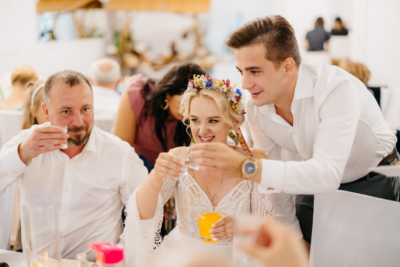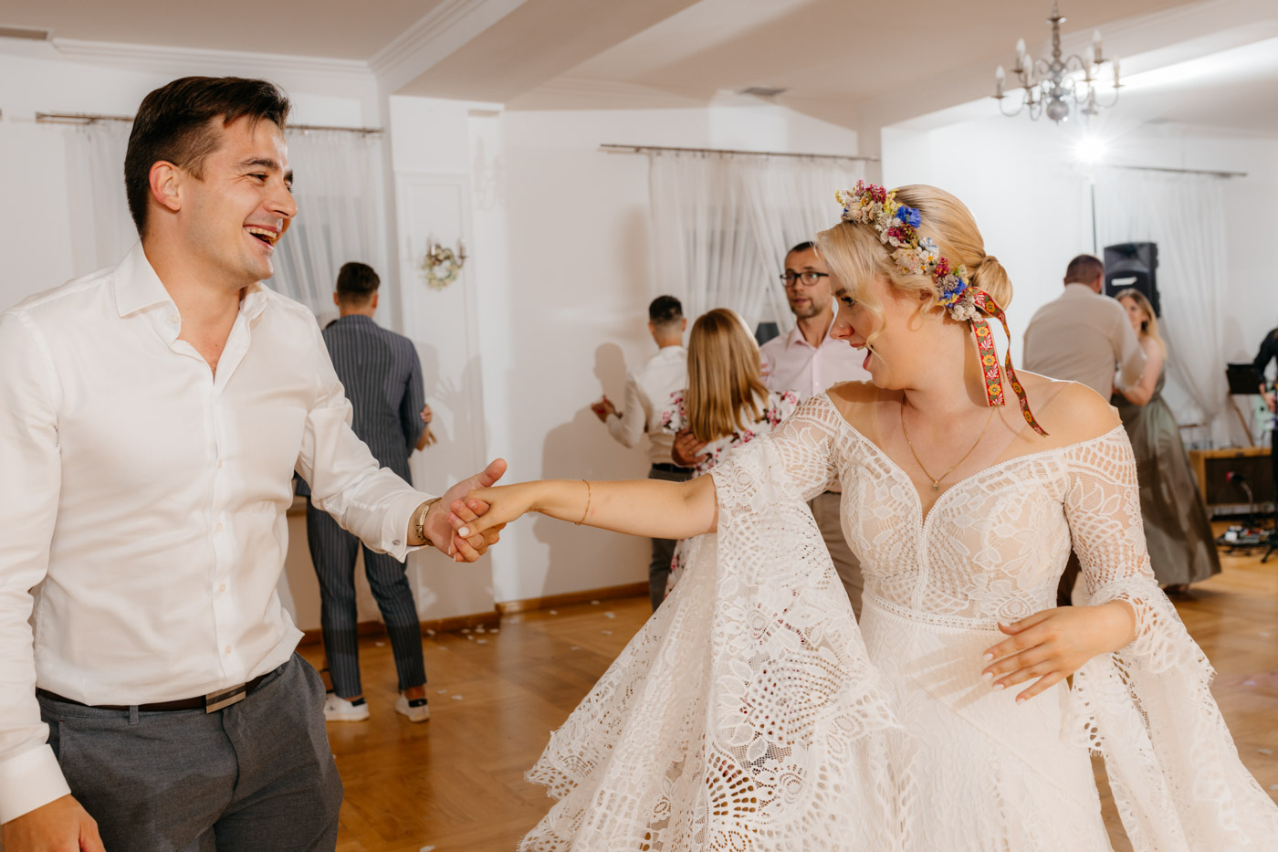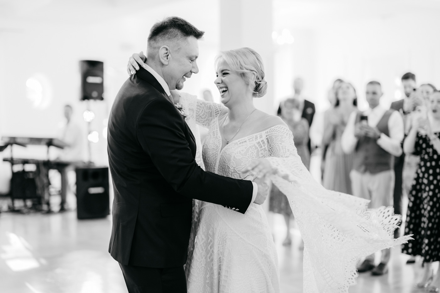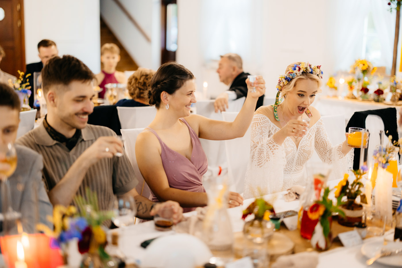 Nie wyobrażam sobie tego dnia gdzie indziej. Klimat starego dworu, oddzielonego od drogi alejką wiekowych drzew wpisał się perfekcyjnie. Nie obyło się bez wzruszeń, uścisków, szaleństwa na parkiecie i toastów z kieliszkiem w dłoni. Miałam wrażenie, że działo się tyle w środku, jak i na zewnątrz, że niesamowicie trudno przyszło mi wyselekcjonować odpowiednią ilość kadrów.