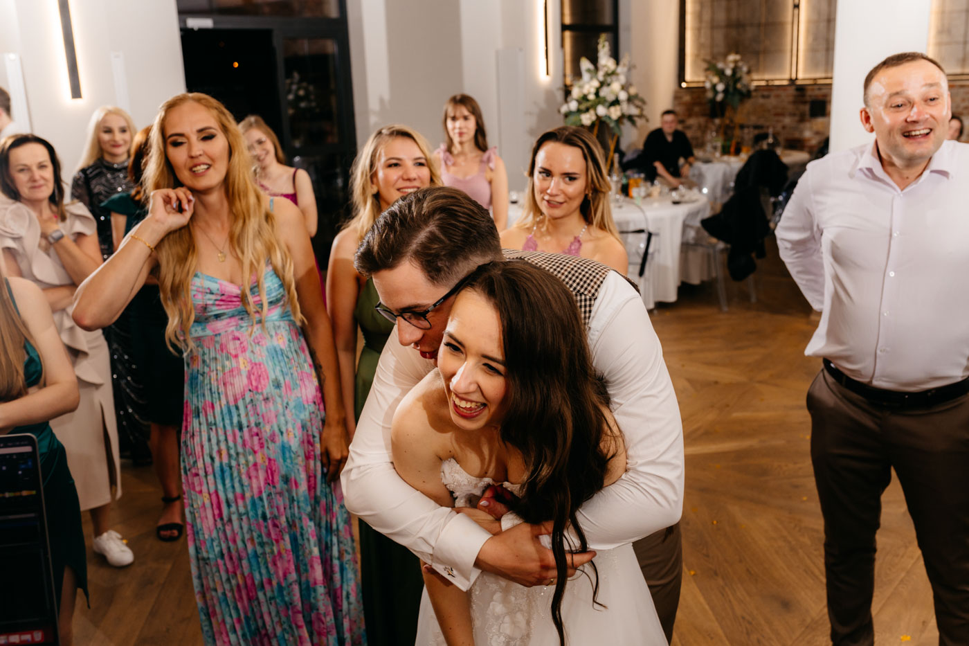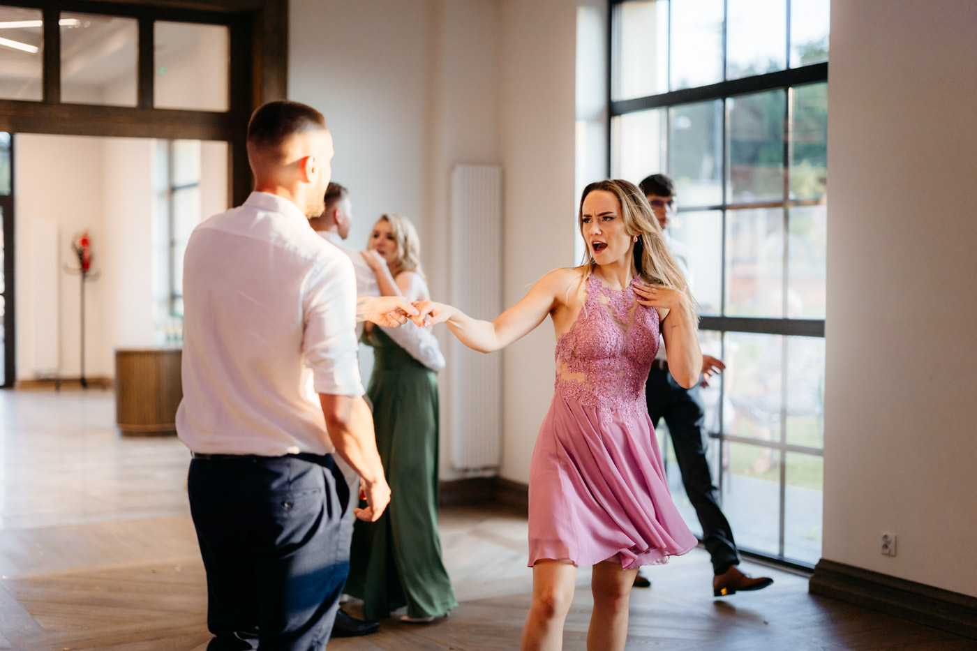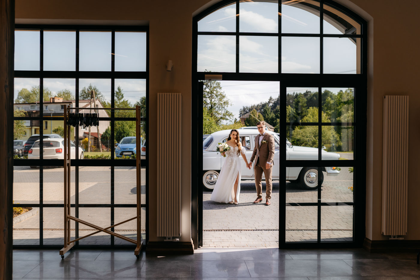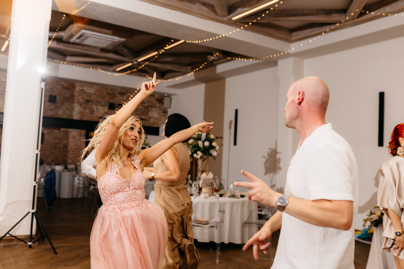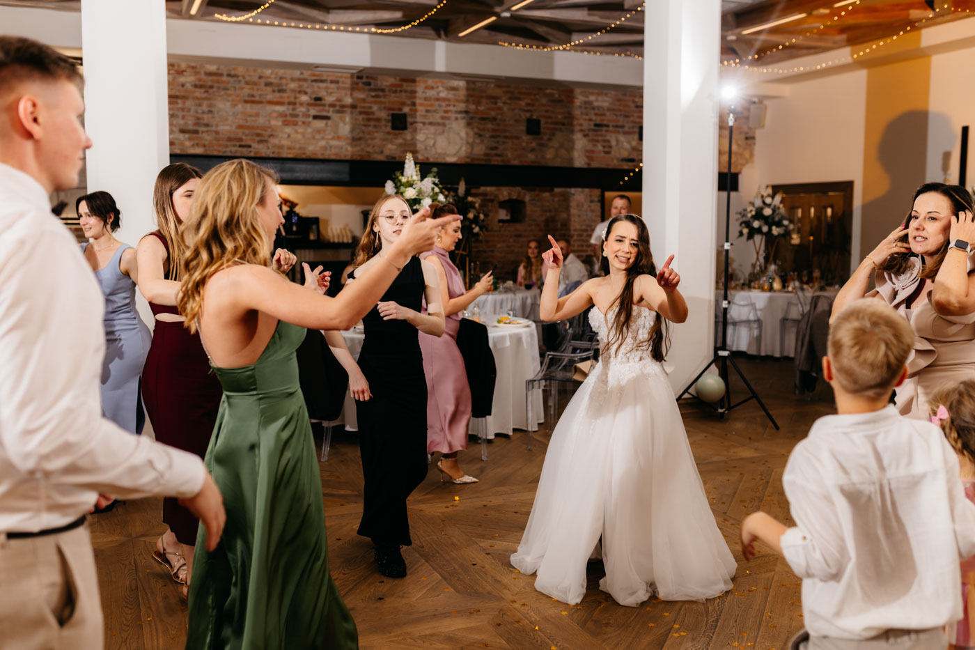 Jeśli lubicie miejsca, w których można na chwilę odpocząć od zgiełku miasta i nacieszyć oczy zielenią, Dwie Rzeki obok Krakowa wydają się być świetną propozycją. Za lokalem rozciąga się szeroki pas zieleni, uroku dodają majestatyczne wierzby i szum pobliskiej rzeki. To idealna propozycja dla Par szukających miejsca blisko natury, ale nadal w niedalekiej odległości od miasta. Malowniczy ogród ze starymi drzewami stanowił idealne tło do mini sesji Pary Młodej. Dzięki tej dodatkowej przestrzeni mieliśmy szansę na zrobienie zdjęć w odosobnieniu, podczas gdy goście szaleli na parkiecie.