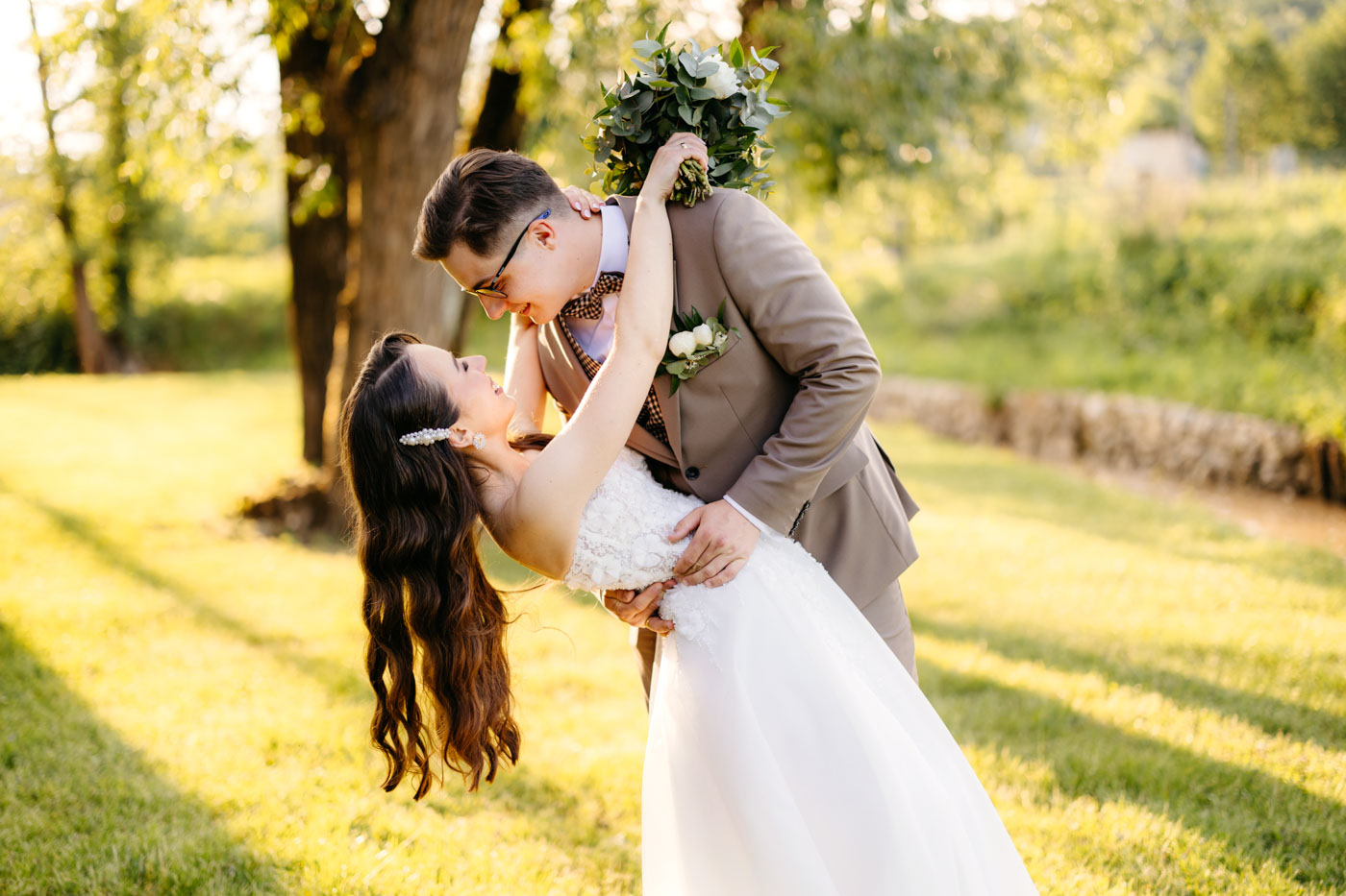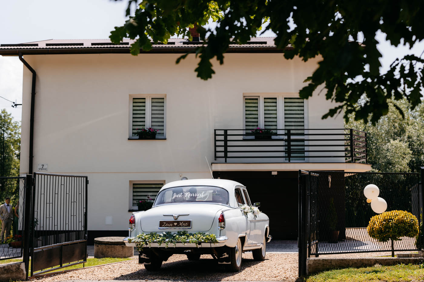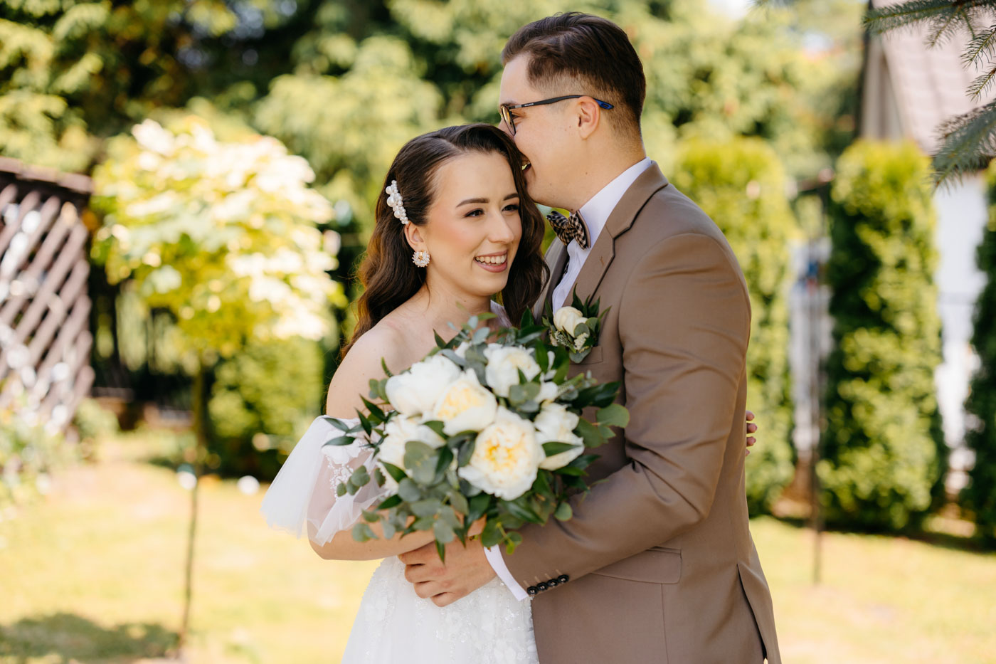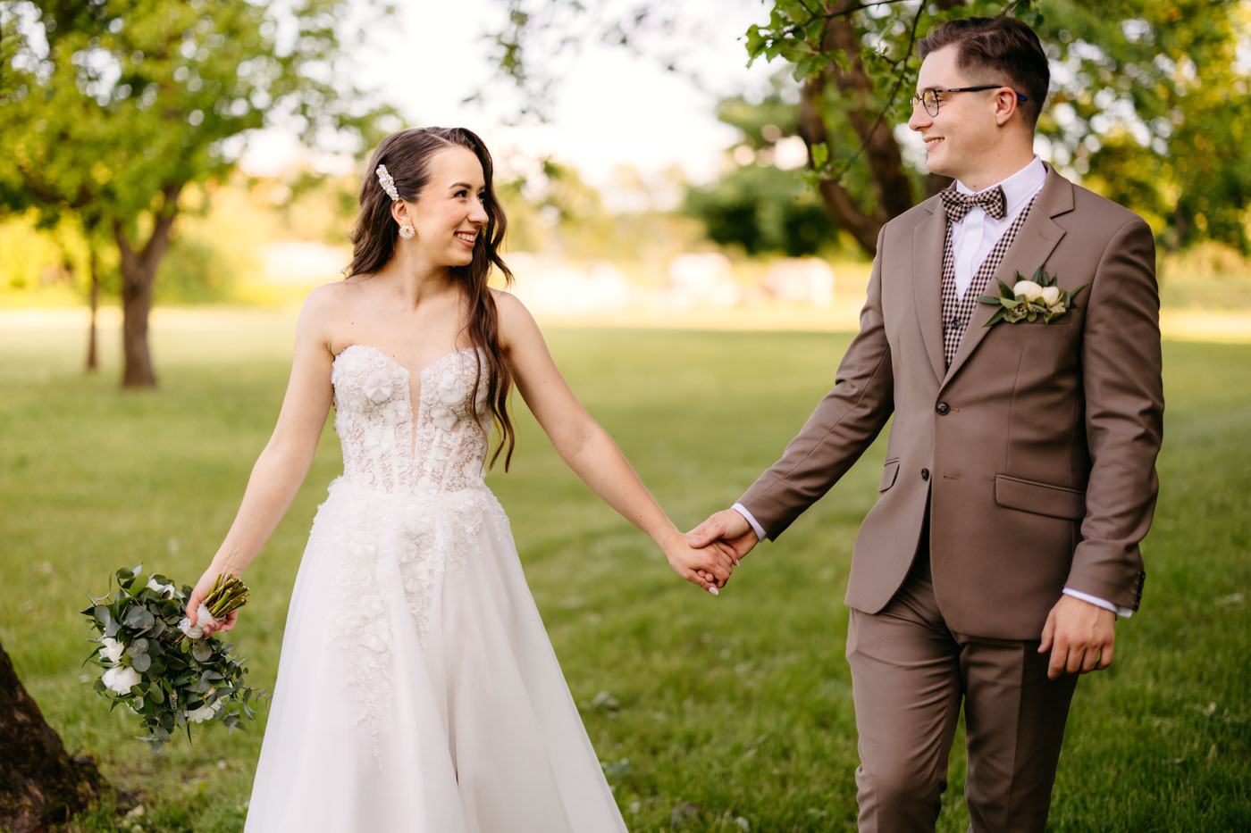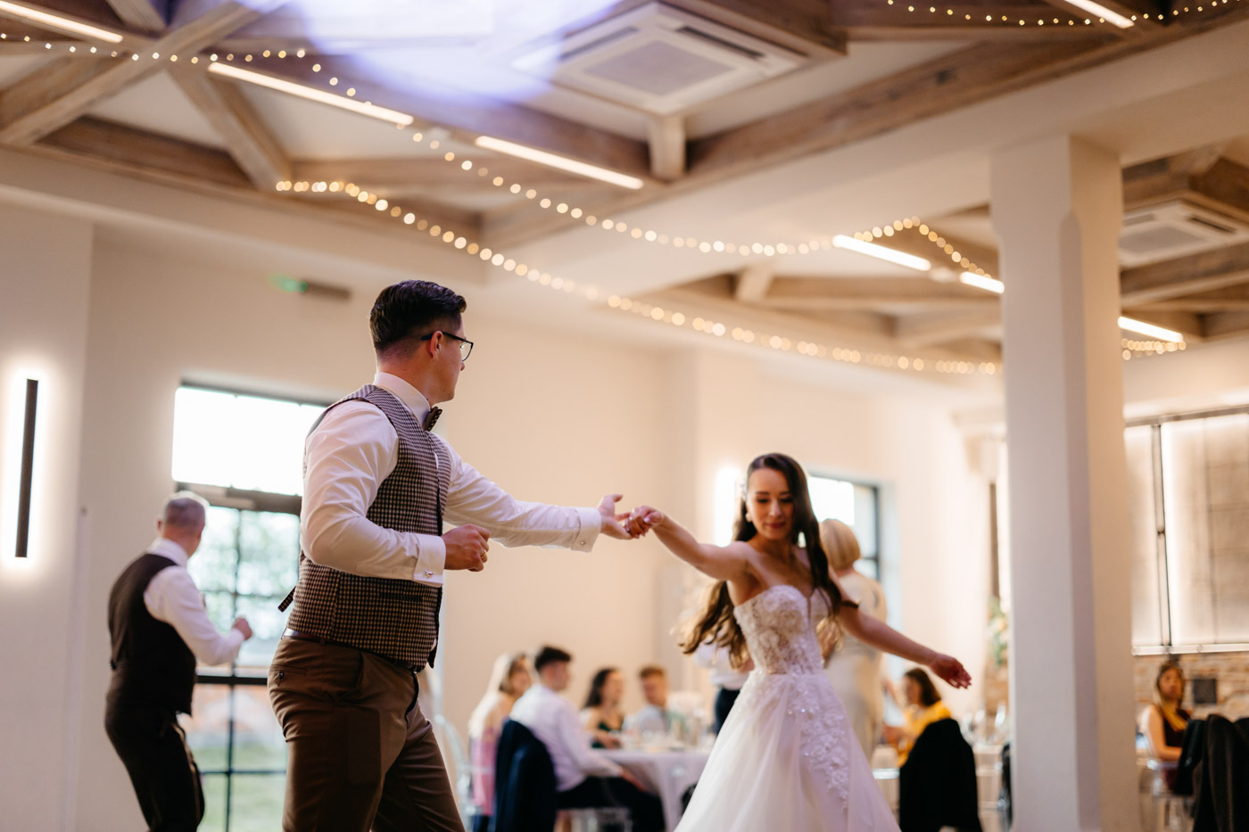 Jeśli lubicie miejsca, w których można na chwilę odpocząć od zgiełku miasta i nacieszyć oczy zielenią, Dwie Rzeki obok Krakowa wydają się być świetną propozycją. Za lokalem rozciąga się szeroki pas zieleni, uroku dodają majestatyczne wierzby i szum pobliskiej rzeki. To idealna propozycja dla Par szukających miejsca blisko natury, ale nadal w niedalekiej odległości od miasta. Malowniczy ogród ze starymi drzewami stanowił idealne tło do mini sesji Pary Młodej. Dzięki tej dodatkowej przestrzeni mieliśmy szansę na zrobienie zdjęć w odosobnieniu, podczas gdy goście szaleli na parkiecie.
