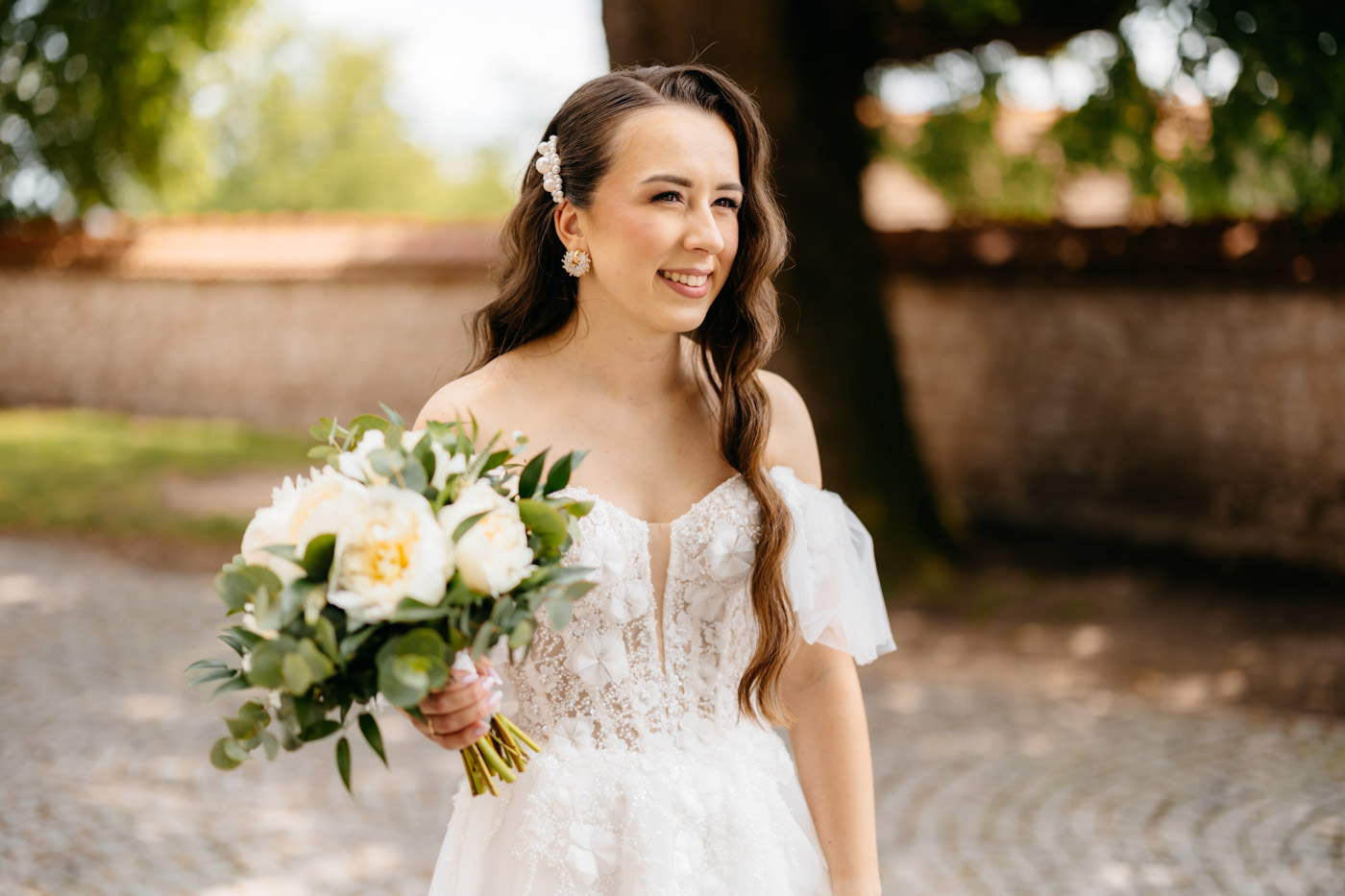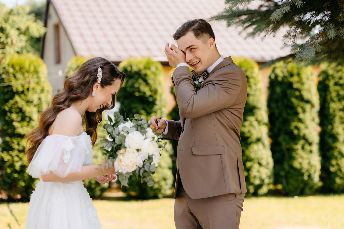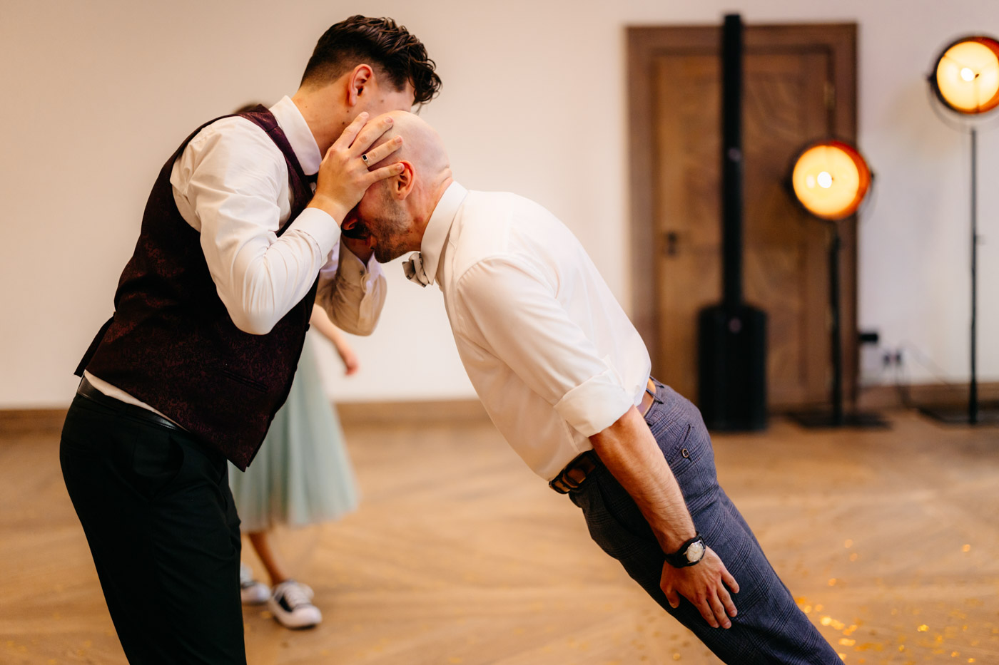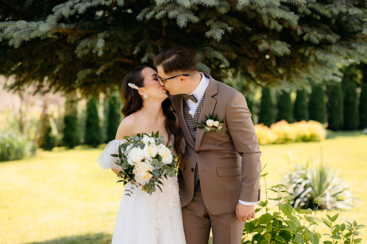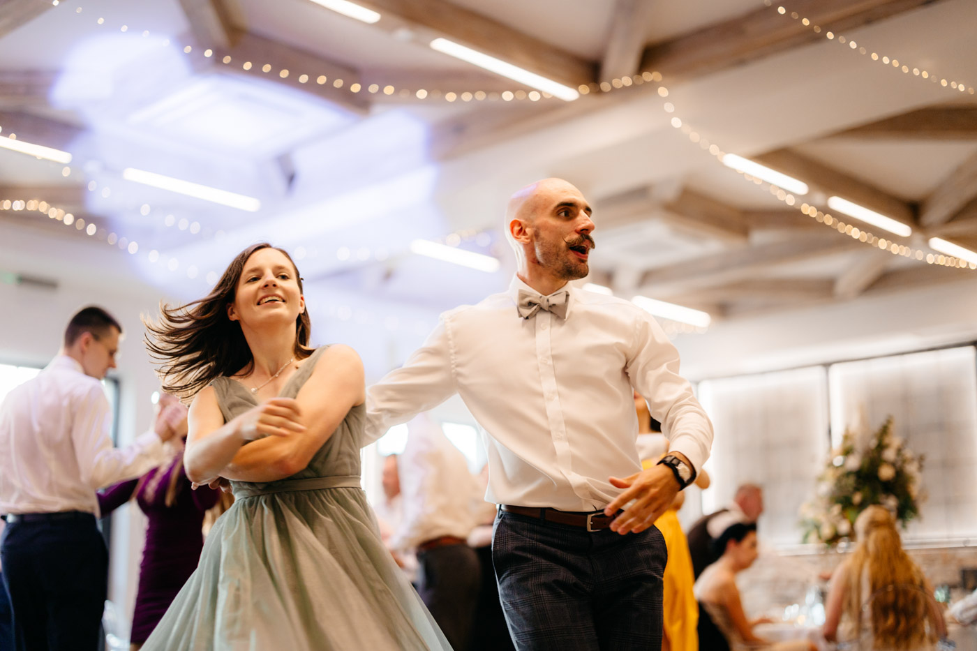 Jeśli lubicie miejsca, w których można na chwilę odpocząć od zgiełku miasta i nacieszyć oczy zielenią, Dwie Rzeki obok Krakowa wydają się być świetną propozycją. Za lokalem rozciąga się szeroki pas zieleni, uroku dodają majestatyczne wierzby i szum pobliskiej rzeki. To idealna propozycja dla Par szukających miejsca blisko natury, ale nadal w niedalekiej odległości od miasta. Malowniczy ogród ze starymi drzewami stanowił idealne tło do mini sesji Pary Młodej. Dzięki tej dodatkowej przestrzeni mieliśmy szansę na zrobienie zdjęć w odosobnieniu, podczas gdy goście szaleli na parkiecie.