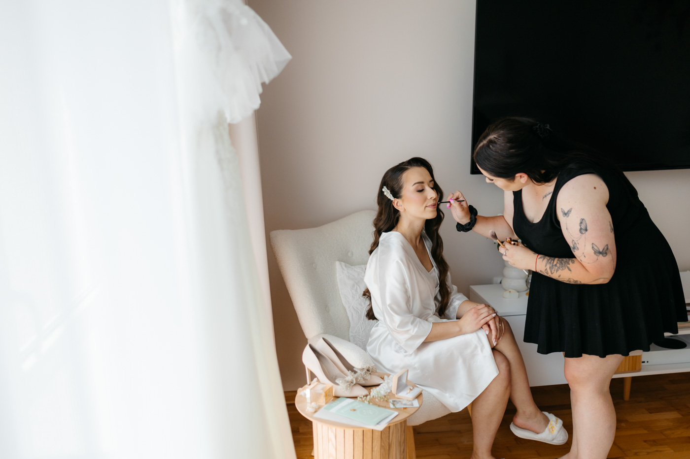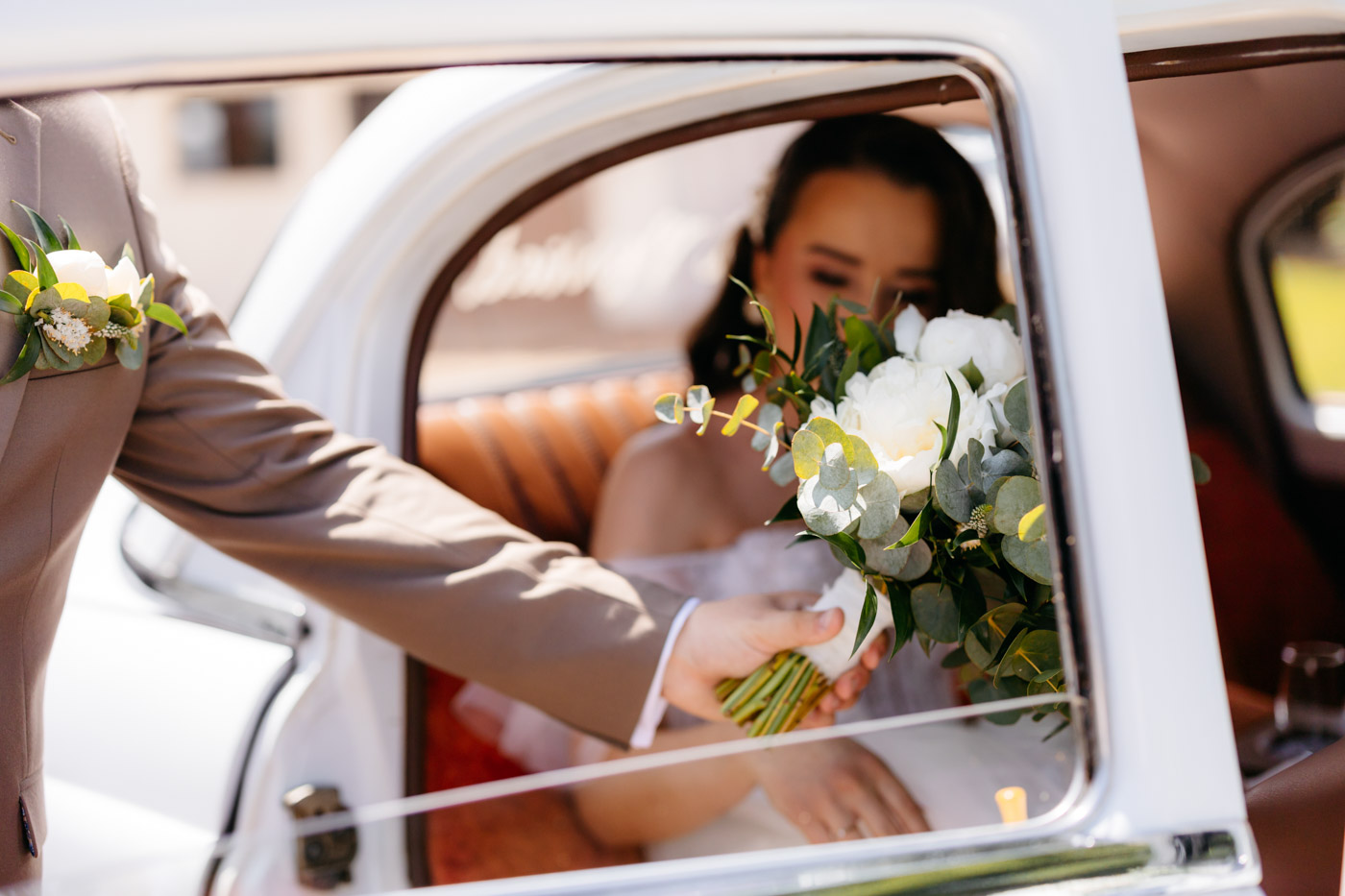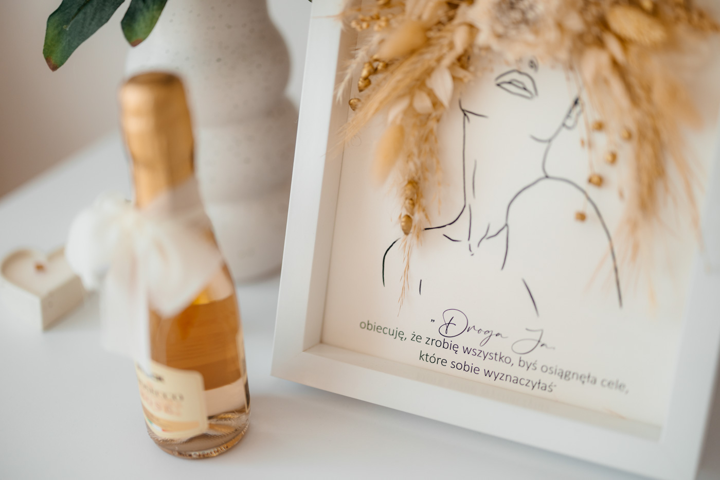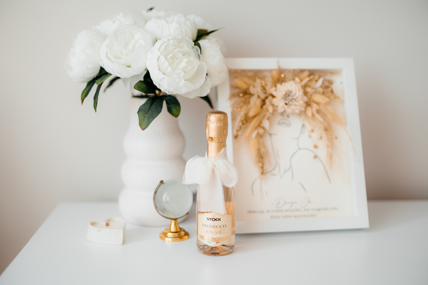 Już zaproszenia ślubne przyciągały uwagę – zostały zaprojektowane na wzór biletów lotniczych, zapowiadając gościom, że ten dzień będzie prawdziwą podróżą. Motyw samolotu i walizek przewijał się przez cały dzień: od przygotowań aż po salę weselną, gdzie kompozycje kwiatowe umieszczono w stylizowanych walizkach, a każdy gość otrzymał mały upominek w postaci miniaturowej walizki – symbolicznej pamiątki z „podróży” w dzień miłości tej pary.