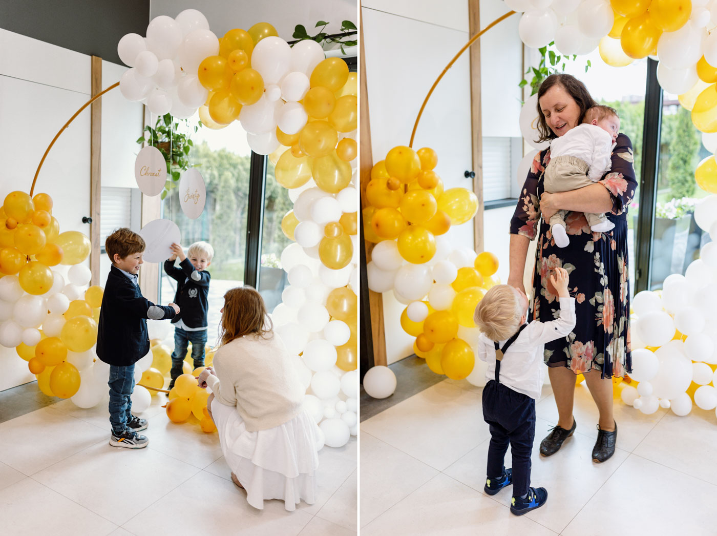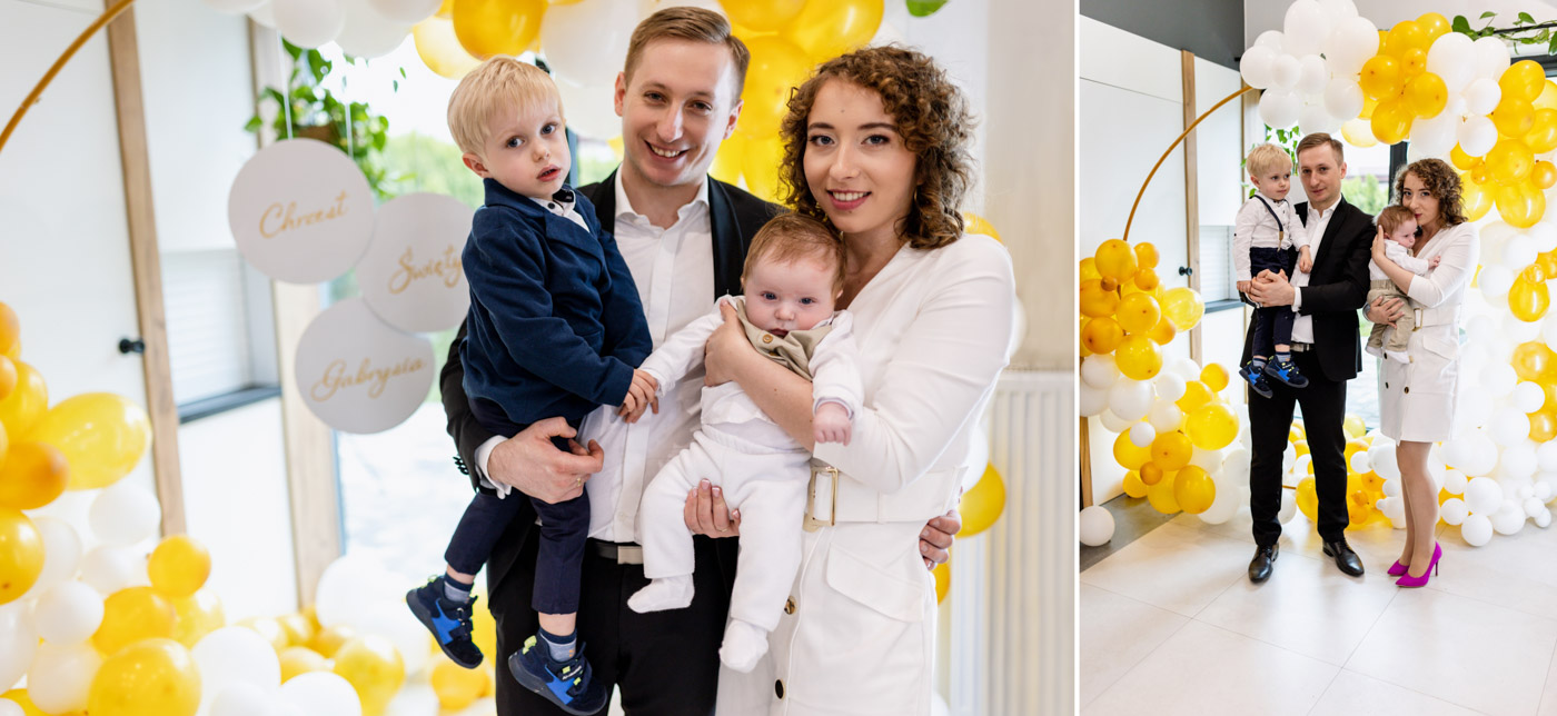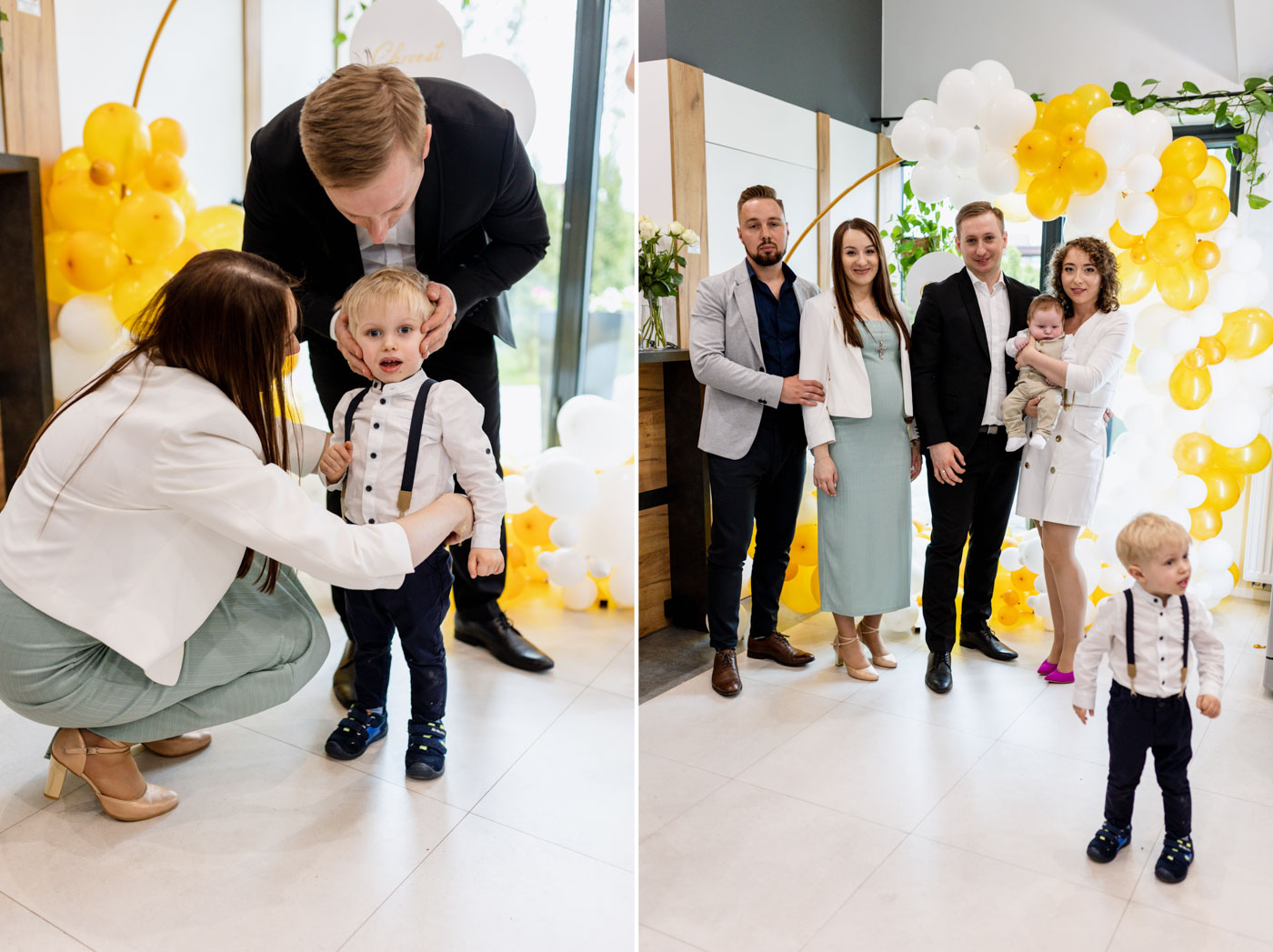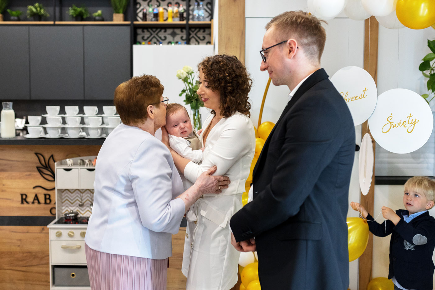 Uroczysty obiad zorganizowano w nowo wybudowanym lokalu na gdowskim Zarabiu. Rabatka Cafe to idealne miejsce na zorganizowanie kameralnych przyjęć w rodzinnym gronie z dala od zgiełku miasta. Klimatyzowana kawiarnia z obszernym parkingiem jest ulokowana nieopodal wartkiej rzeki Raby. Drewniane akcenty, roślinność i duże przeszklenia świetnie się komponują z obszernym ogrodem, w którym zadbano o kącik zabaw dla najmłodszych. Jasna, nowoczesna przestrzeń sprzyja stworzeniu świetlistych ujęć. W tym miejscu warto zwrócić uwagę na przygotowane dekoracje – Ania i Damian z pomocą rodziny sami stworzyli tak piękną ściankę do pamiątkowych fotografii. Z uśmiechem na twarzy wspominam momenty z tego dnia, mam nadzieję, że jeszcze kiedyś będę mogła sfotografować chrzciny w tak pięknych okolicznościach w gminie Gdów.