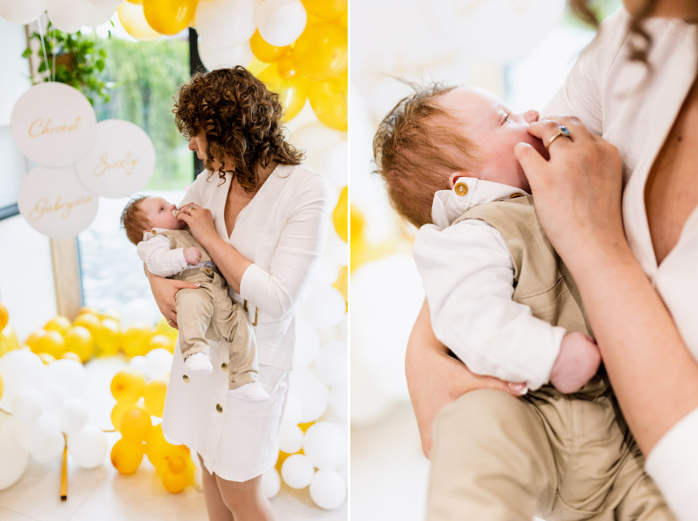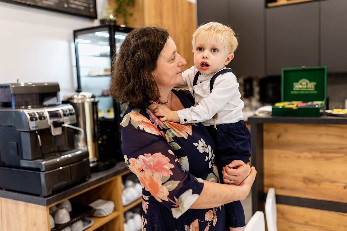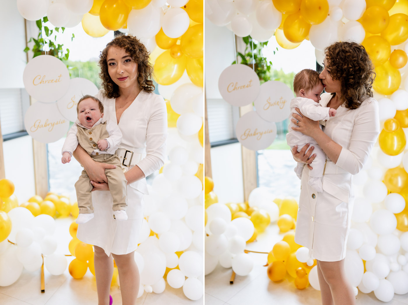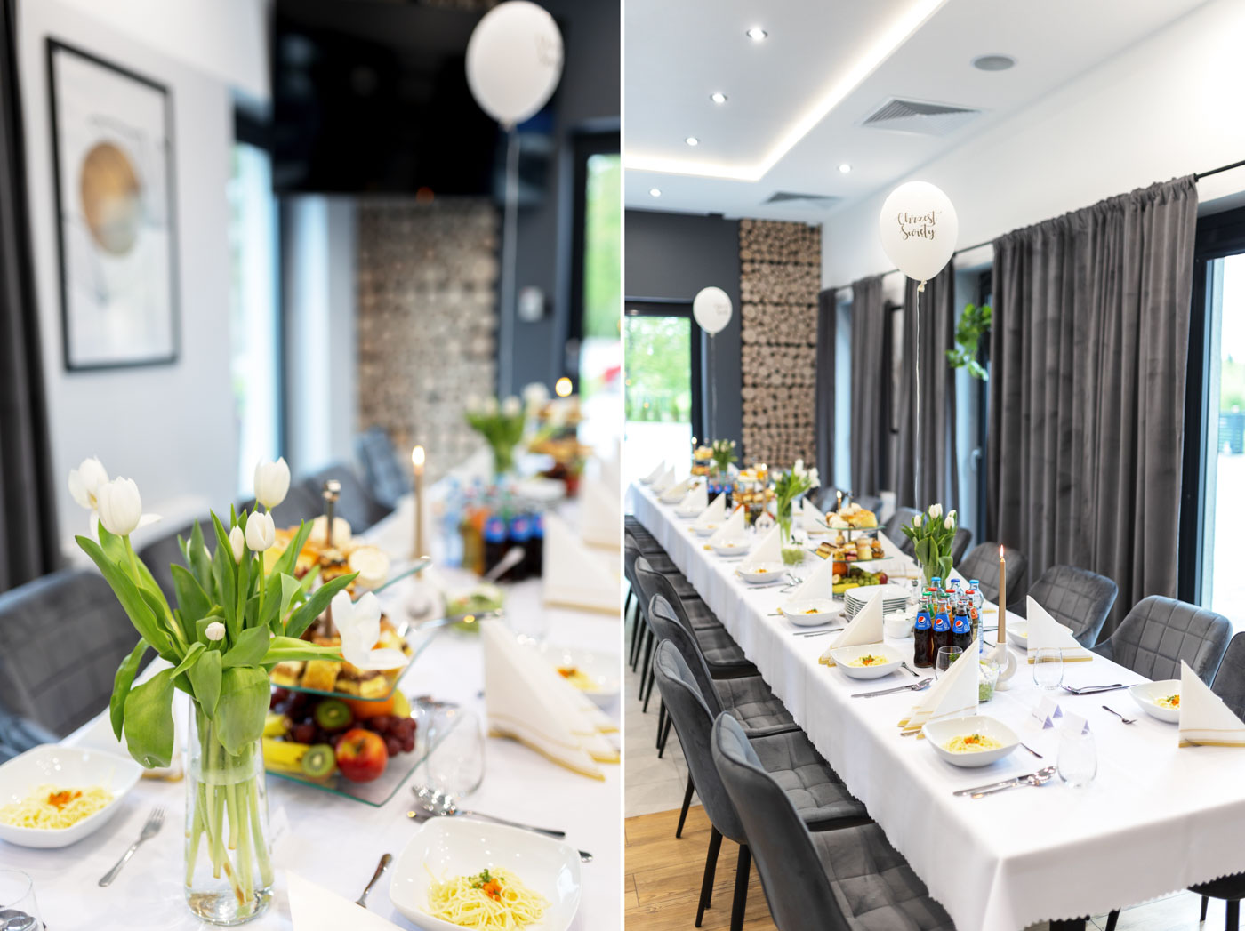 Uroczysty obiad zorganizowano w nowo wybudowanym lokalu na gdowskim Zarabiu. Rabatka Cafe to idealne miejsce na zorganizowanie kameralnych przyjęć w rodzinnym gronie z dala od zgiełku miasta. Klimatyzowana kawiarnia z obszernym parkingiem jest ulokowana nieopodal wartkiej rzeki Raby. Drewniane akcenty, roślinność i duże przeszklenia świetnie się komponują z obszernym ogrodem, w którym zadbano o kącik zabaw dla najmłodszych. Jasna, nowoczesna przestrzeń sprzyja stworzeniu świetlistych ujęć. W tym miejscu warto zwrócić uwagę na przygotowane dekoracje – Ania i Damian z pomocą rodziny sami stworzyli tak piękną ściankę do pamiątkowych fotografii. Z uśmiechem na twarzy wspominam momenty z tego dnia, mam nadzieję, że jeszcze kiedyś będę mogła sfotografować chrzciny w tak pięknych okolicznościach w gminie Gdów.