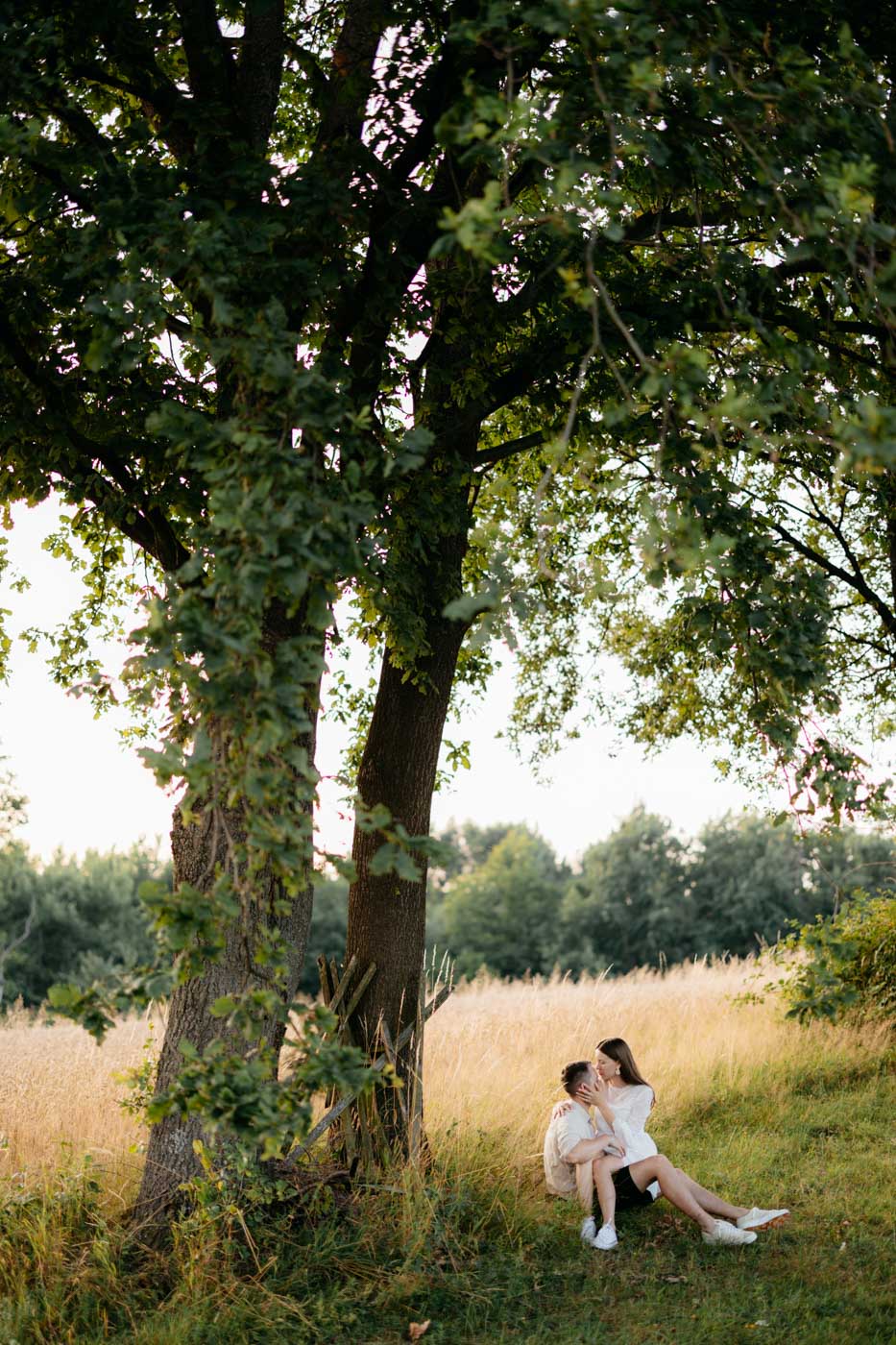 Wielu osobom wydaje się, że do pięknych zdjęć potrzebne są spektakularne miejsca. Tymczasem ta sesja narzeczeńska na łące pod Krakowem, w rejonie gminy Gdów udowodniła, że wystarczy zwykła polna droga, kawałek łąki i gotowość do przeżywania chwil w pełni. Magia kryje się w zaufaniu – kiedy para ufa fotografowi, może skupić się tylko na sobie.