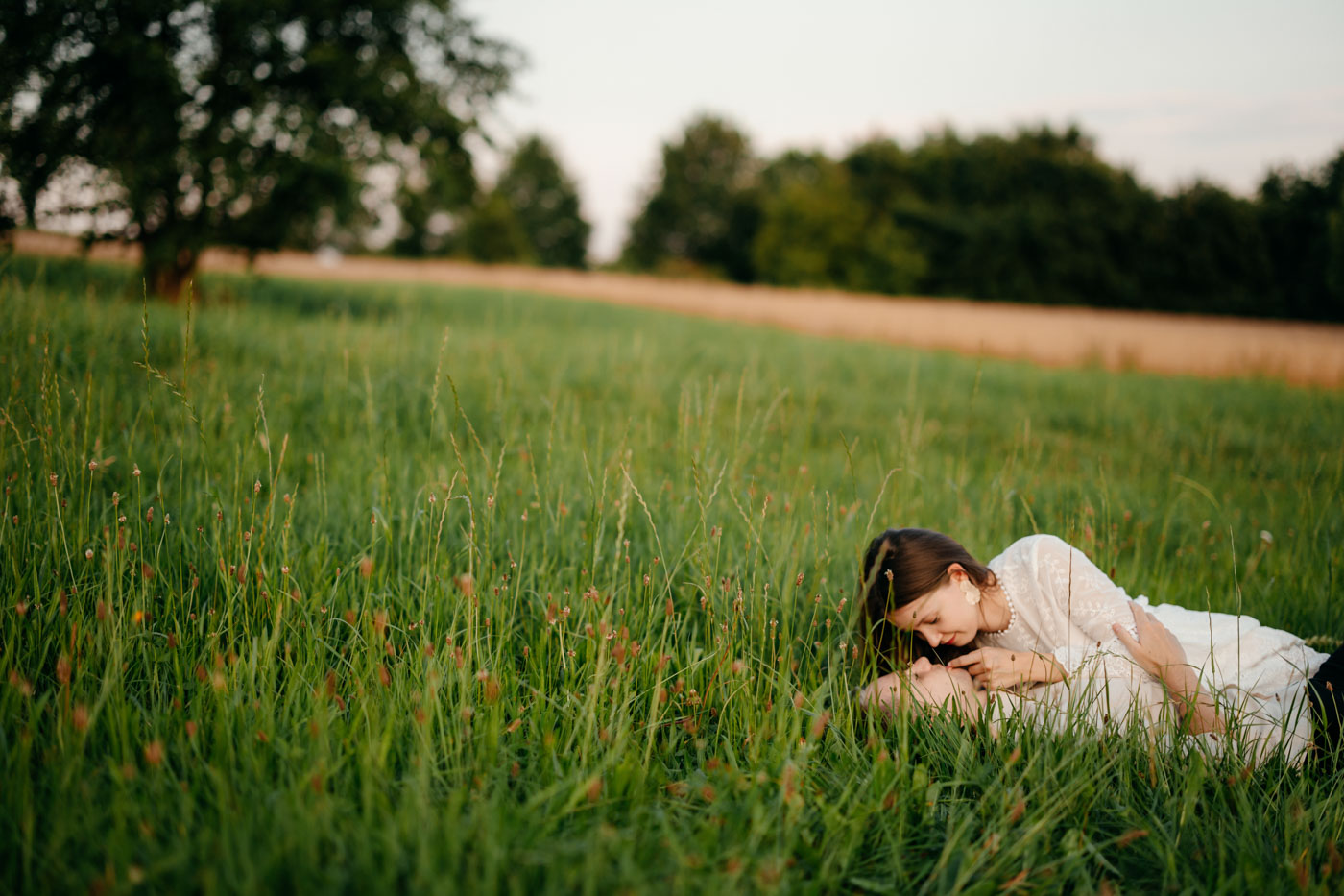 Były momenty, kiedy po prostu leżeliśmy w wysokiej trawie, patrząc w niebo i słuchając szumu natury. To właśnie wtedy powstają kadry, w których widać bliskość, radość i spokój – bez ustawiania, bez scenariusza, bez presji.